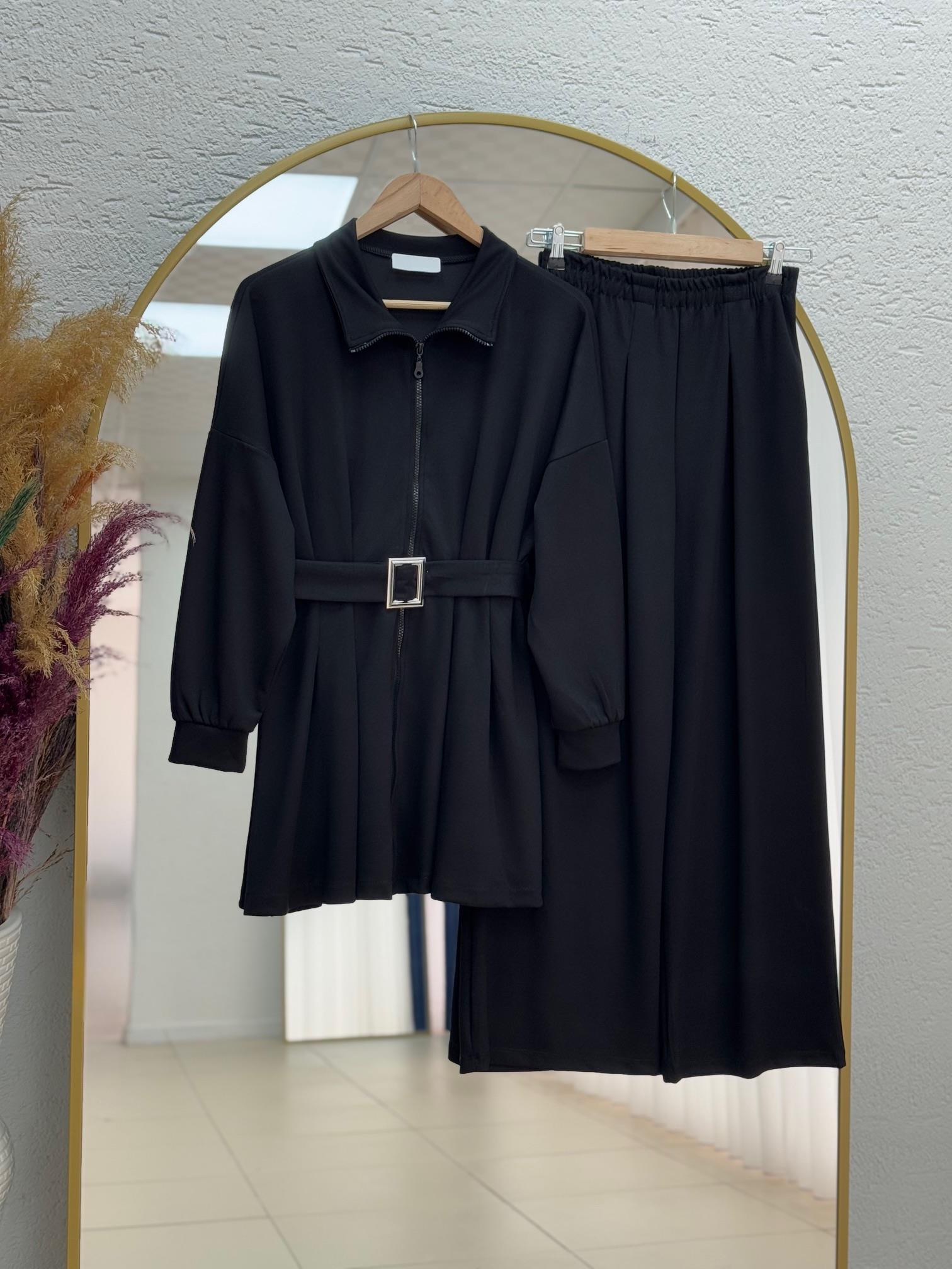 Celesia Fermuarlı Pileli Pantolonlu Takım-MF1825 Siyah