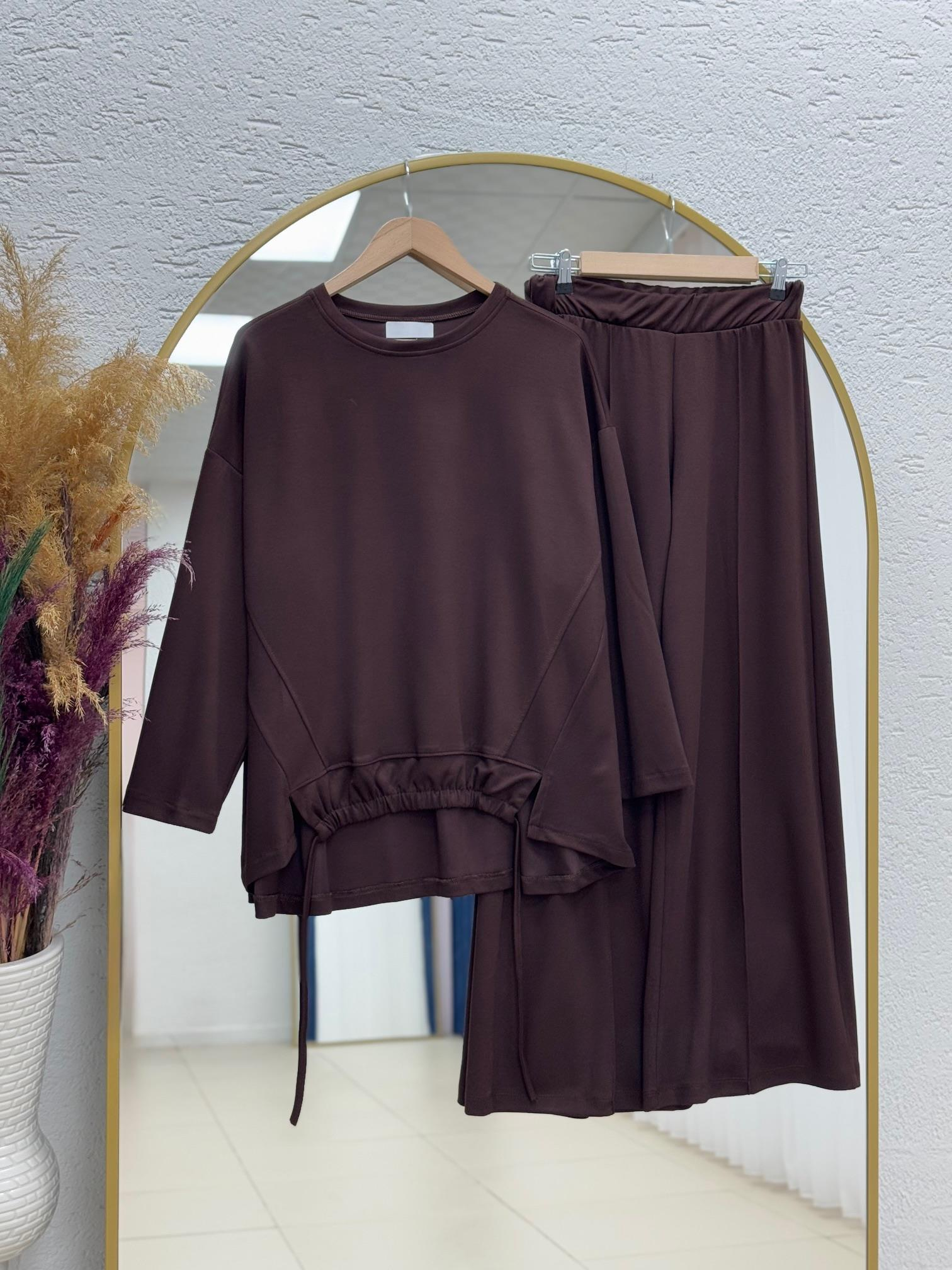 Celetta Ön Büzgülü Pantolonlu Takım-MT5663 Kahve