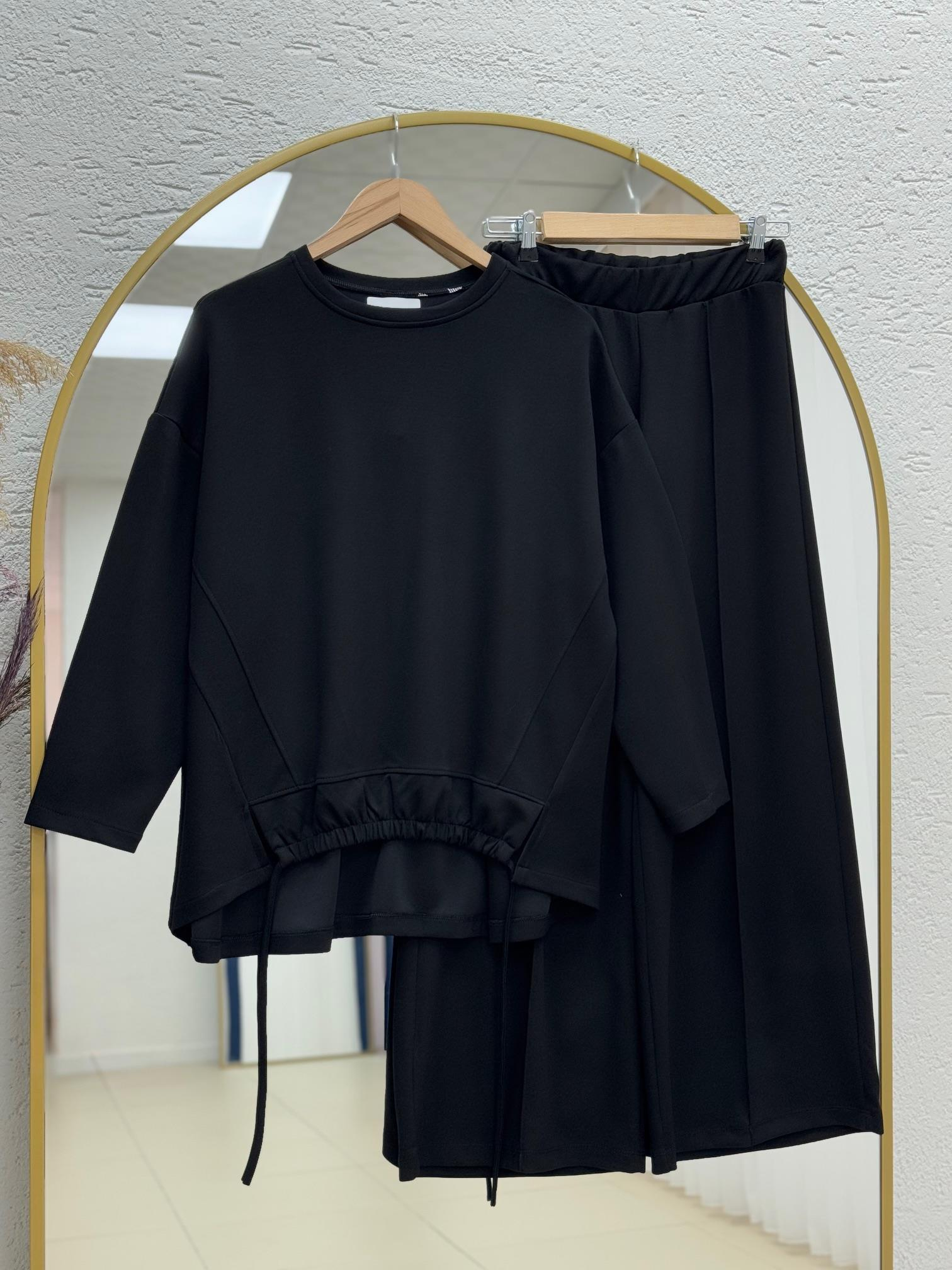 Celetta Ön Büzgülü Pantolonlu Takım-MT5663 Siyah