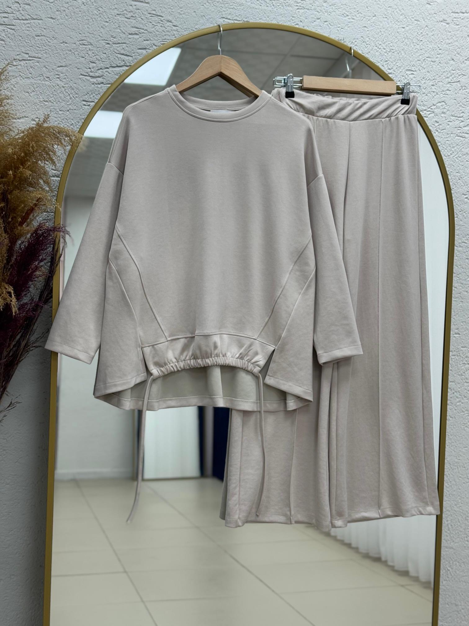 Celetta Ön Büzgülü Pantolonlu Takım-MT5663 Taş