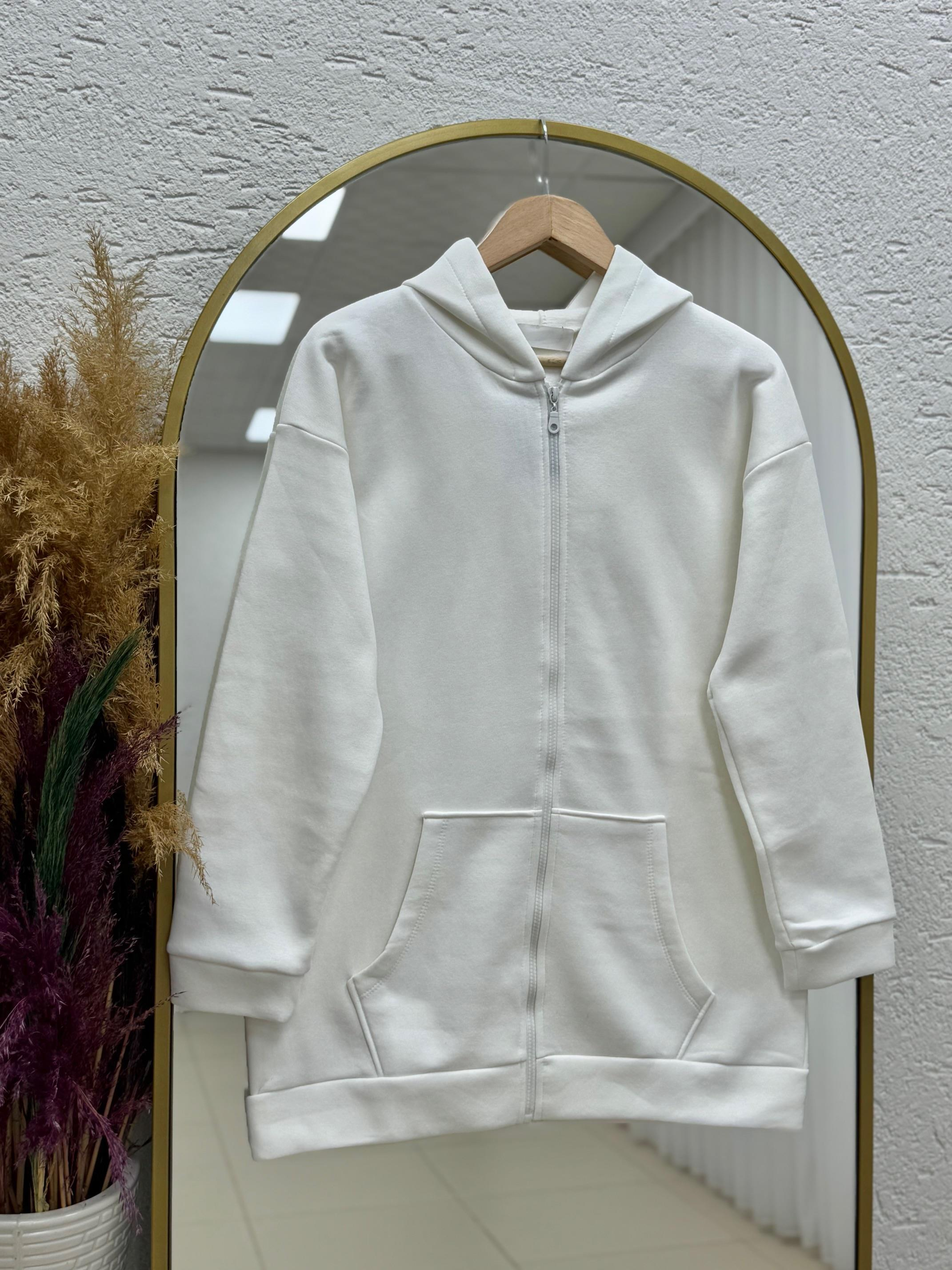 Celinda Üç İp Fermuarlı Kapşonlu Hırka-Zİ3055 Beyaz