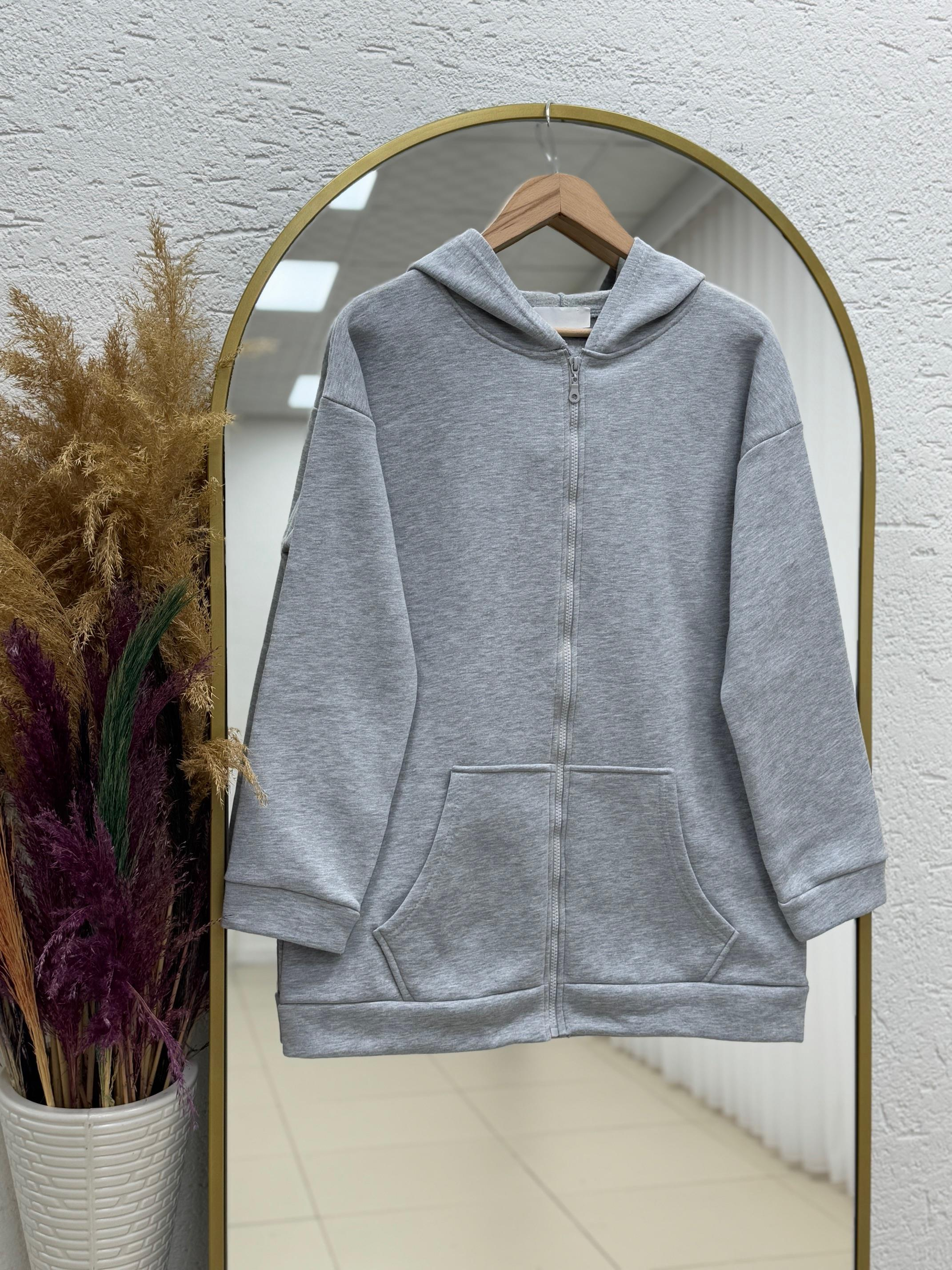 Celinda Üç İp Fermuarlı Kapşonlu Hırka-Zİ3055 Gri