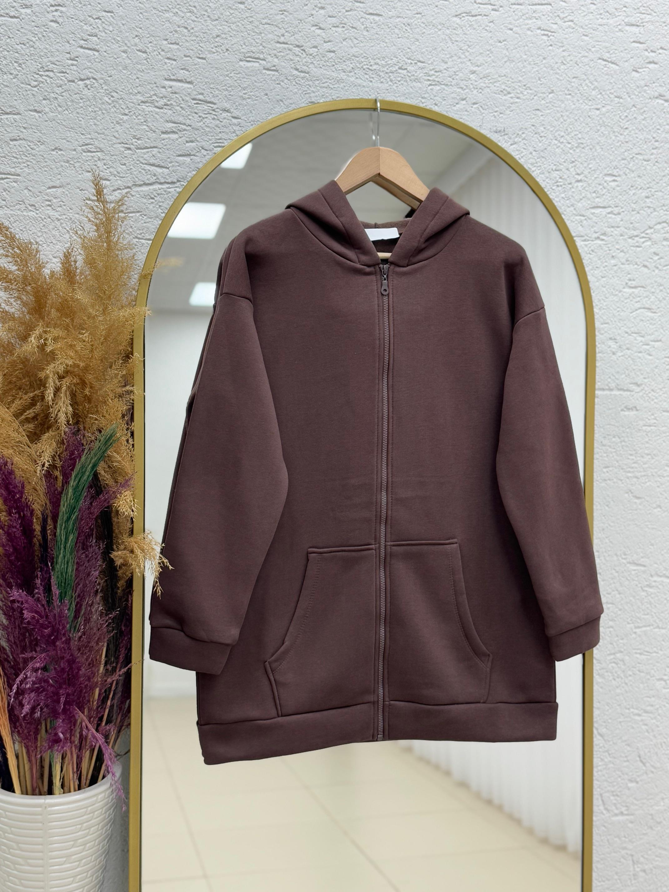 Celinda Üç İp Fermuarlı Kapşonlu Hırka-Zİ3055 Kahve