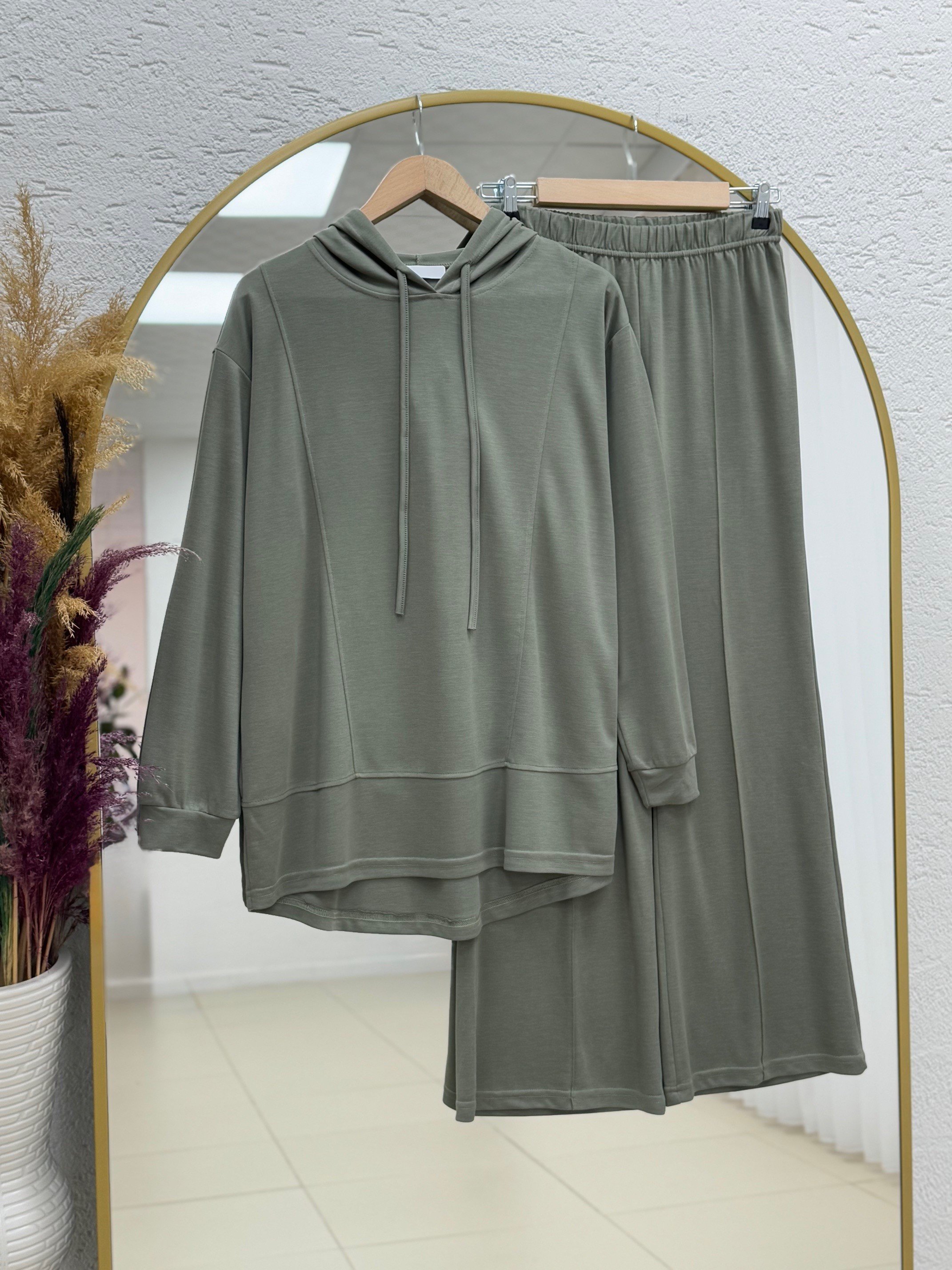 Celmora Kapşonlu Ön Parçalı Pantolonlu Takım-AS485 Haki