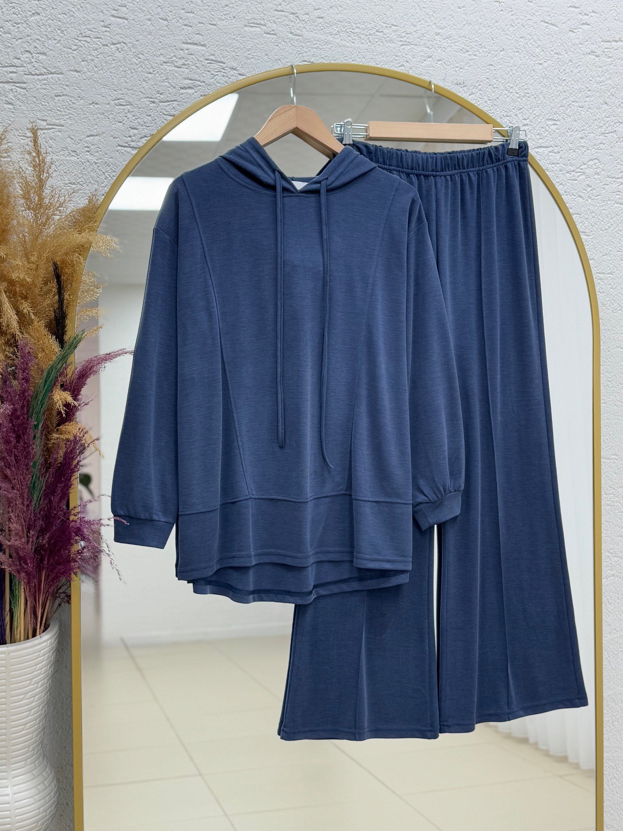 Celmora Kapşonlu Ön Parçalı Pantolonlu Takım-AS485 Lacivert