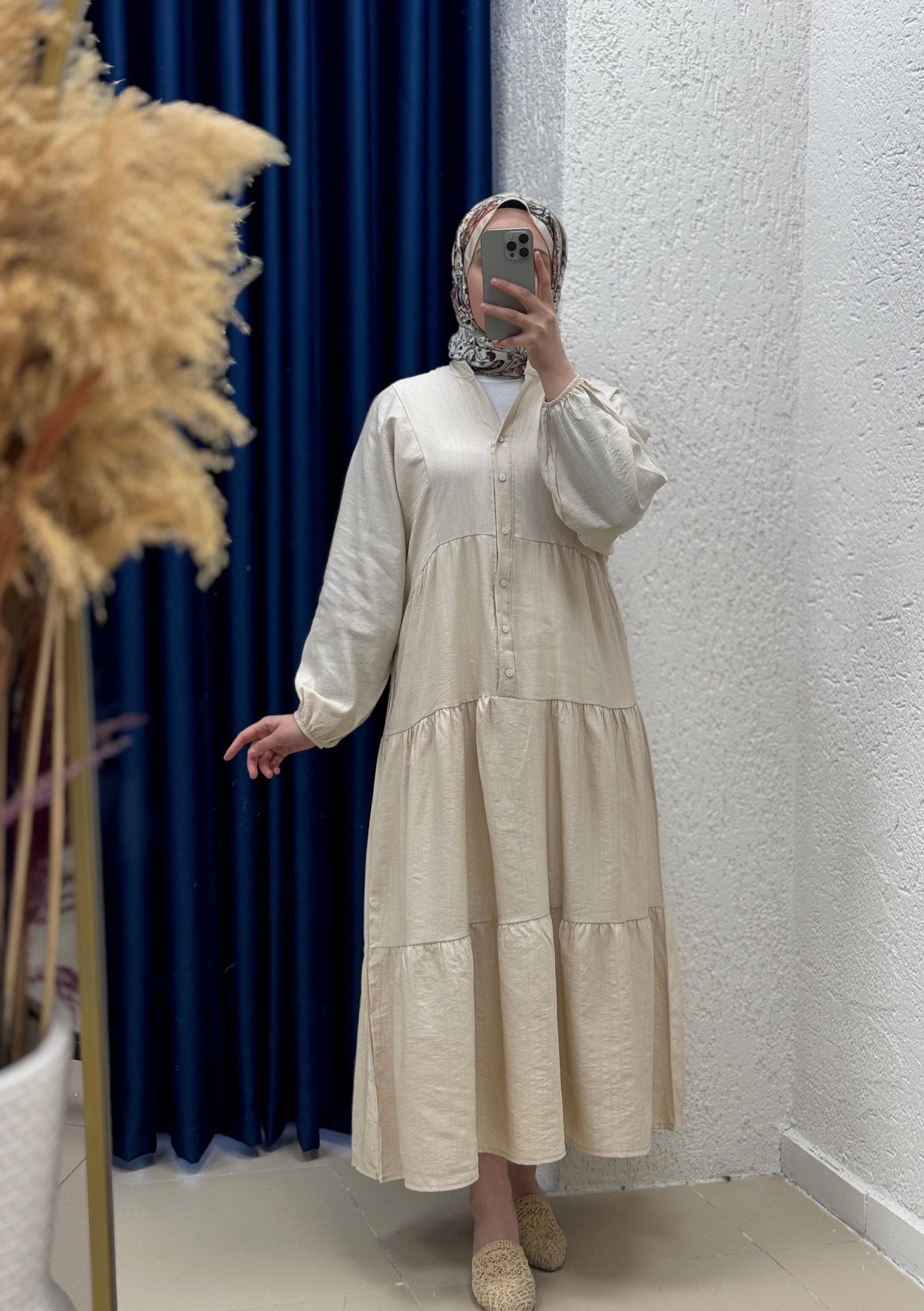 Çilek Salaş 6 Düğmeli Elbise-NA2350 Taş