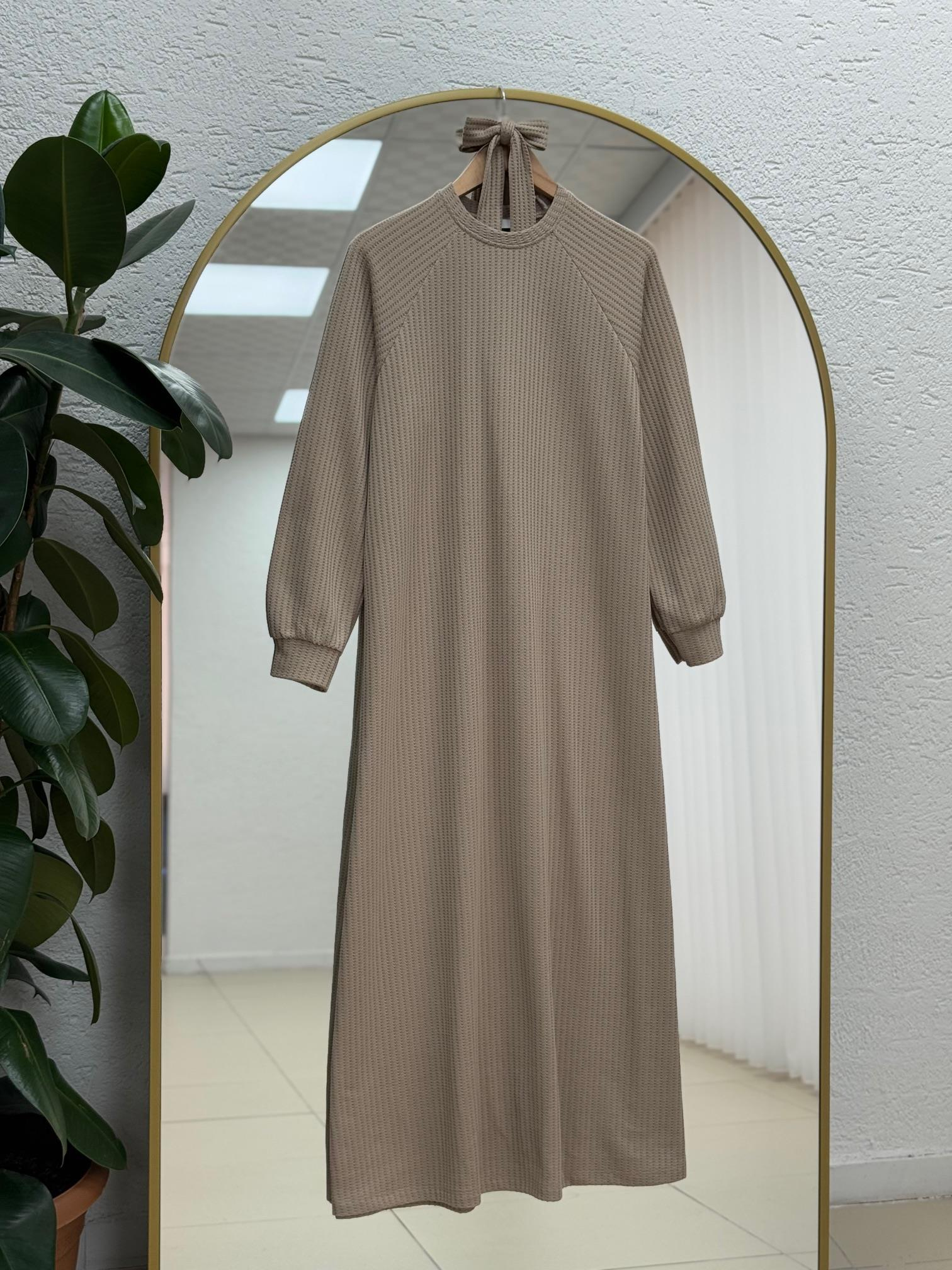 Delella Reglan Kol Kemerli Gofre Elbise-MF1693 Vizon