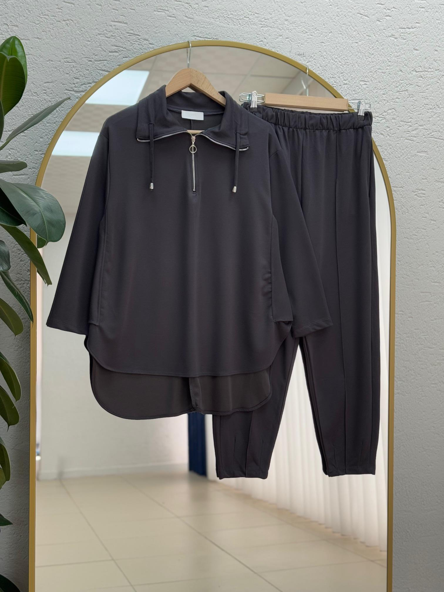 Delina Yarım Fermuarlı Yakalı Salaş Takım-NA3424 Antrasit