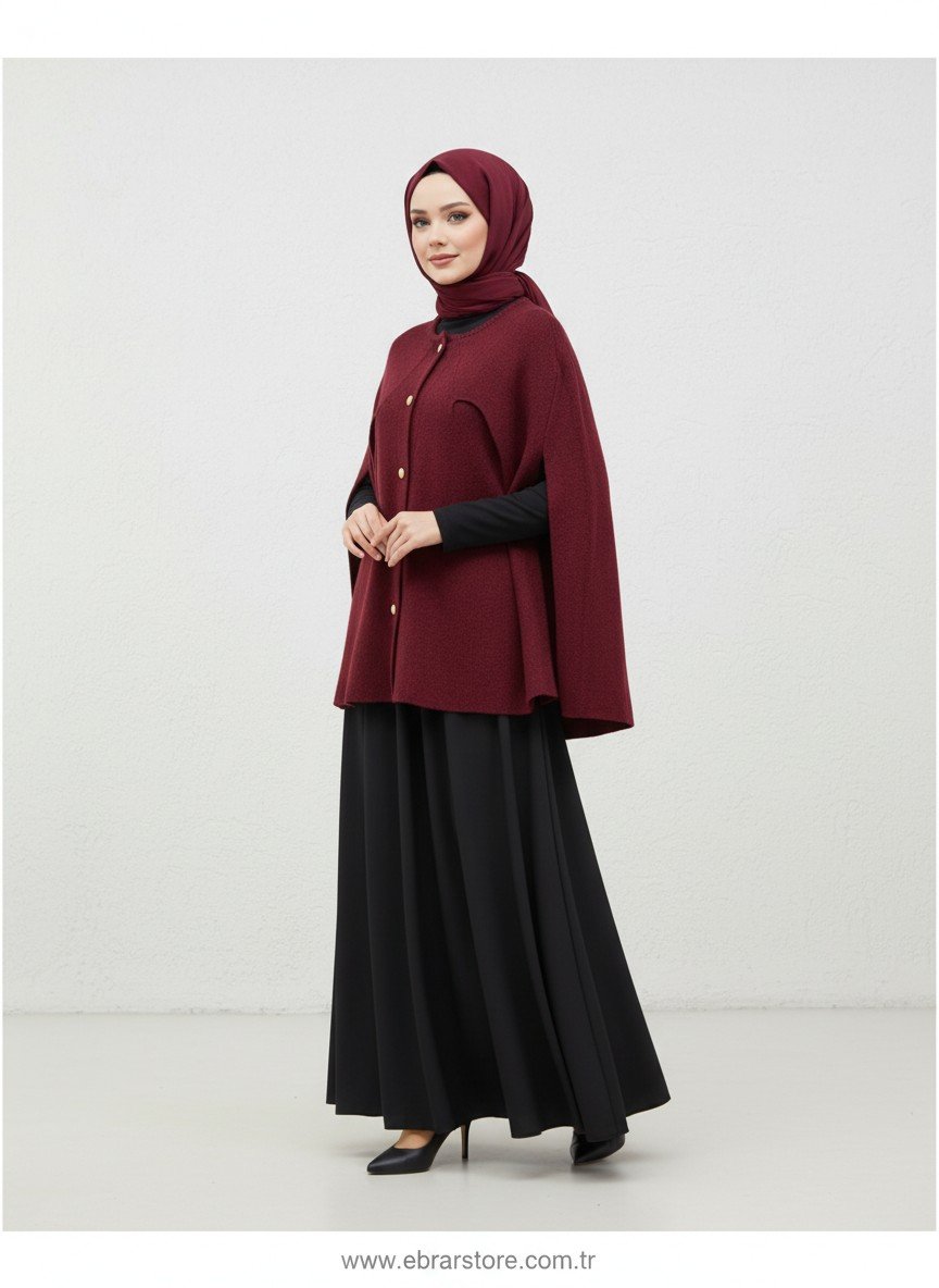 Deyina 5 Gold Düğmeli Pelerinli Triko Panço-Zİ7015 Bordo