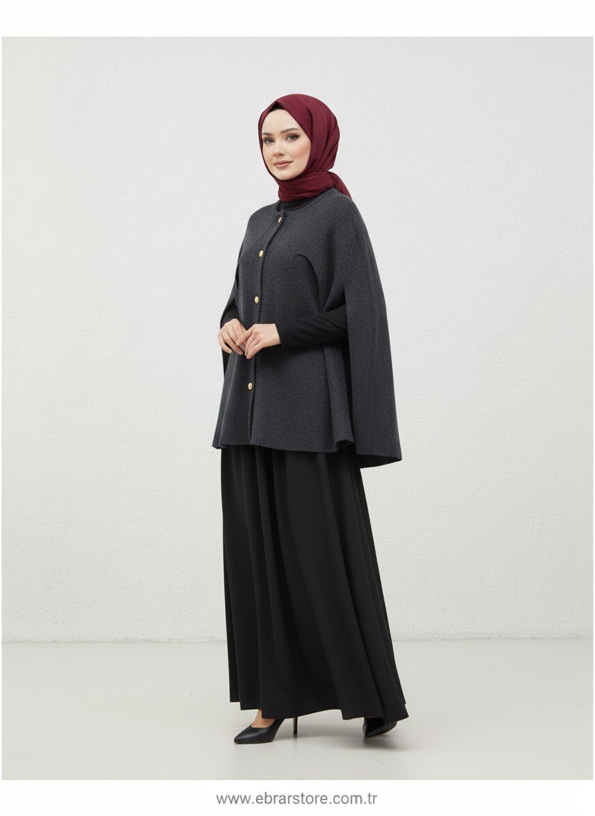 Deyina 5 Gold Düğmeli Pelerinli Triko Panço-Zİ7015 Gri