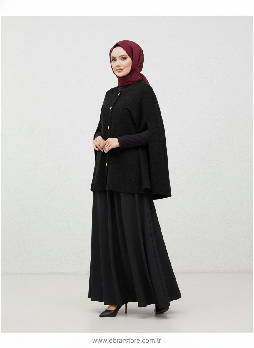 Deyina 5 Gold Düğmeli Pelerinli Triko Panço-Zİ7015 Siyah