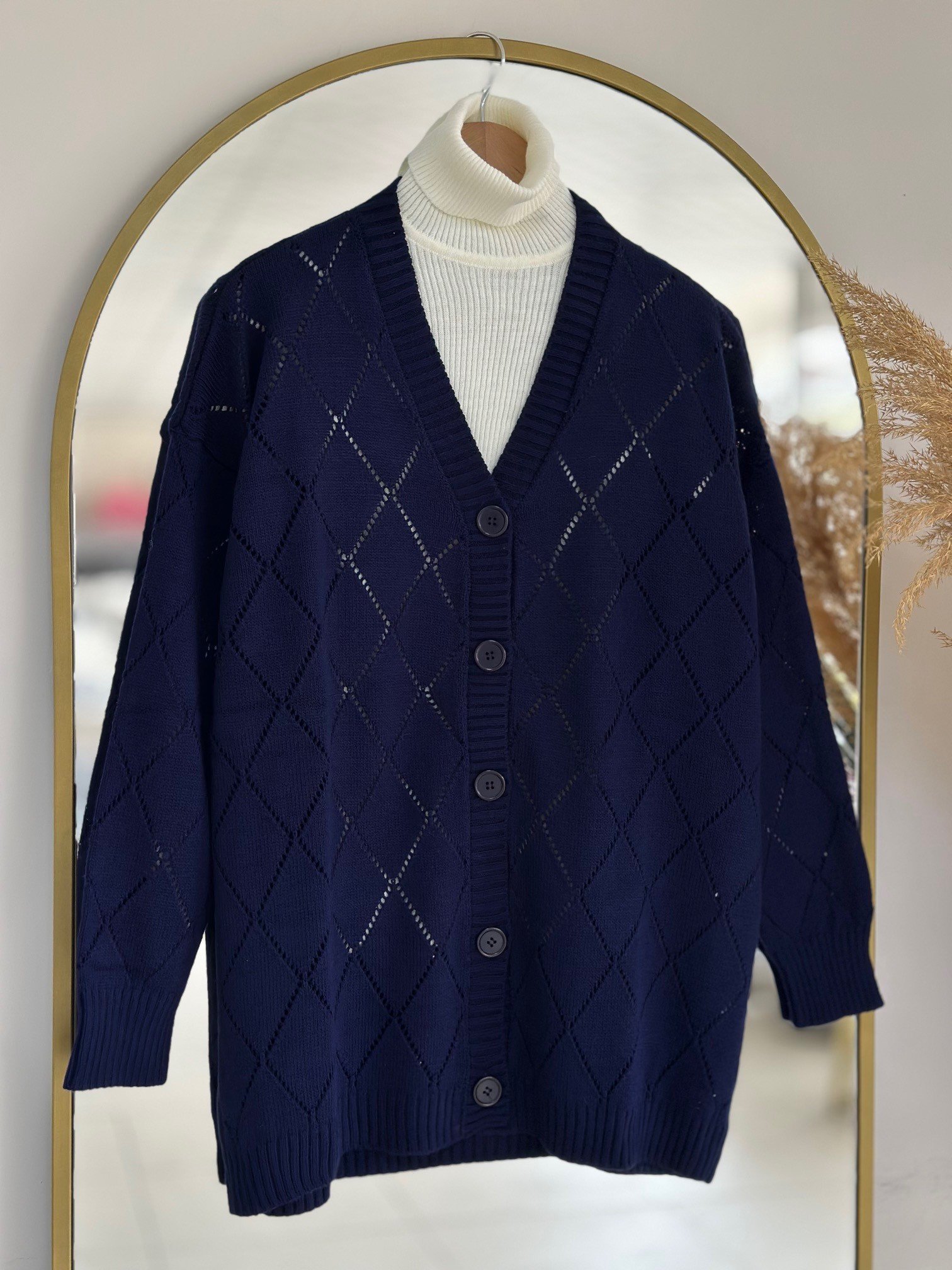 Dila Baklava Desen Delikli Hırka-Zİ6150 Lacivert