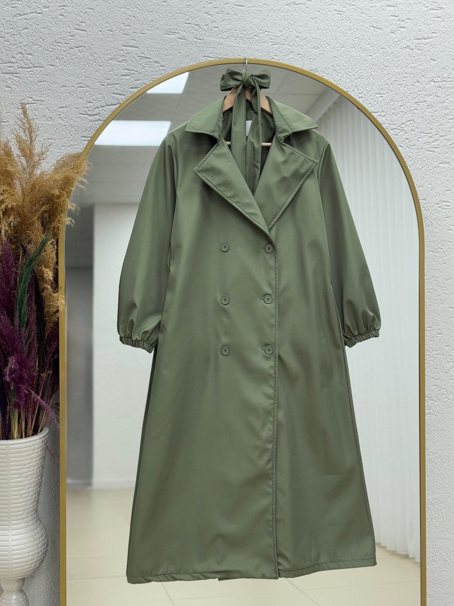 Doredra Kol Lastikli Düğmeli Uzun Trençkot-EK174 Yeşil