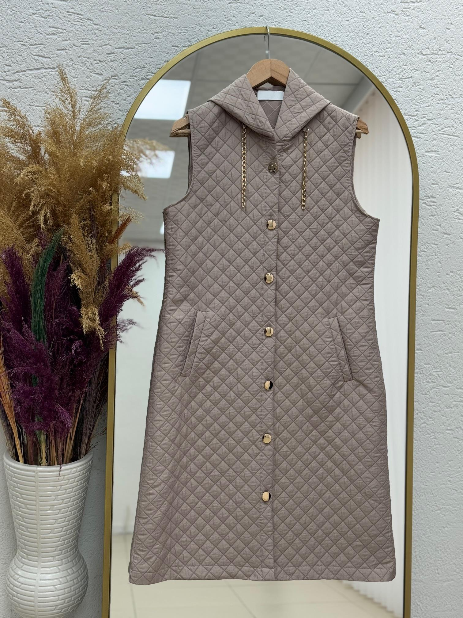 Dorenya Gold Düğmeli Zincir Detay Kapitone Yelek-ZŞ6008 Vizon