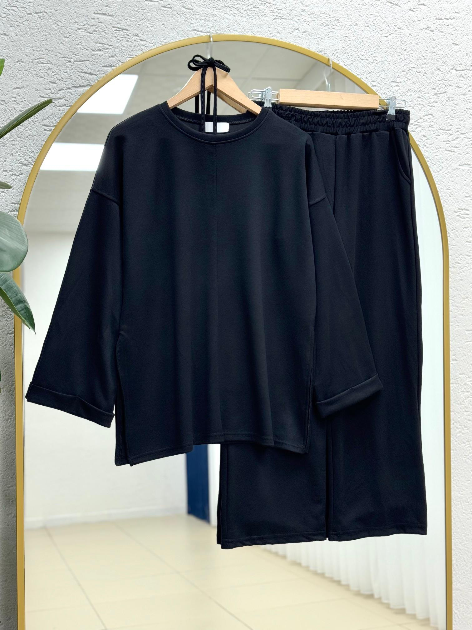 Doretta Önü Gazi Dikişli Pantolonlu Takım-MF1808 Siyah