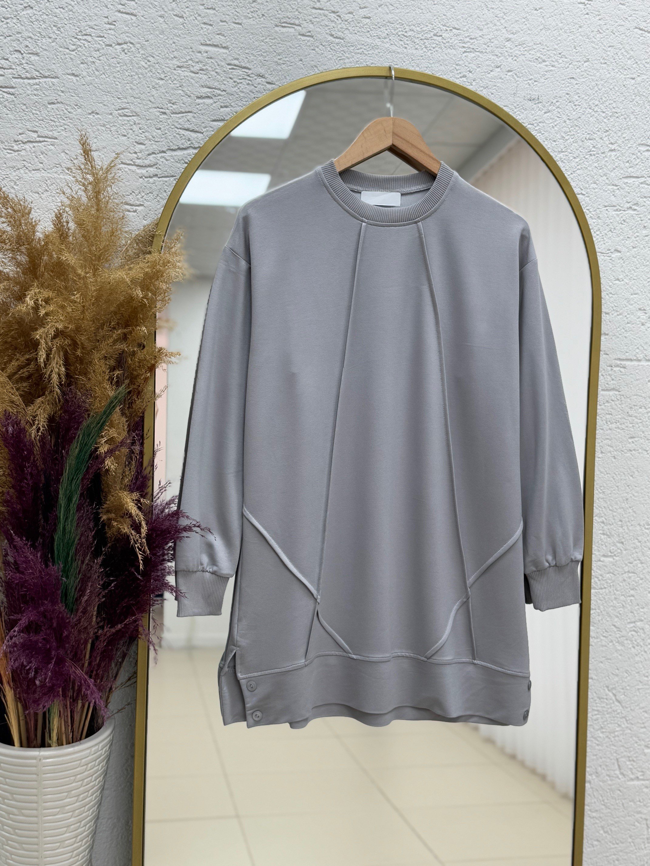 Dorona Çımalı Yanı Düğmeli İki İp Tunik-ZN4878 Gri