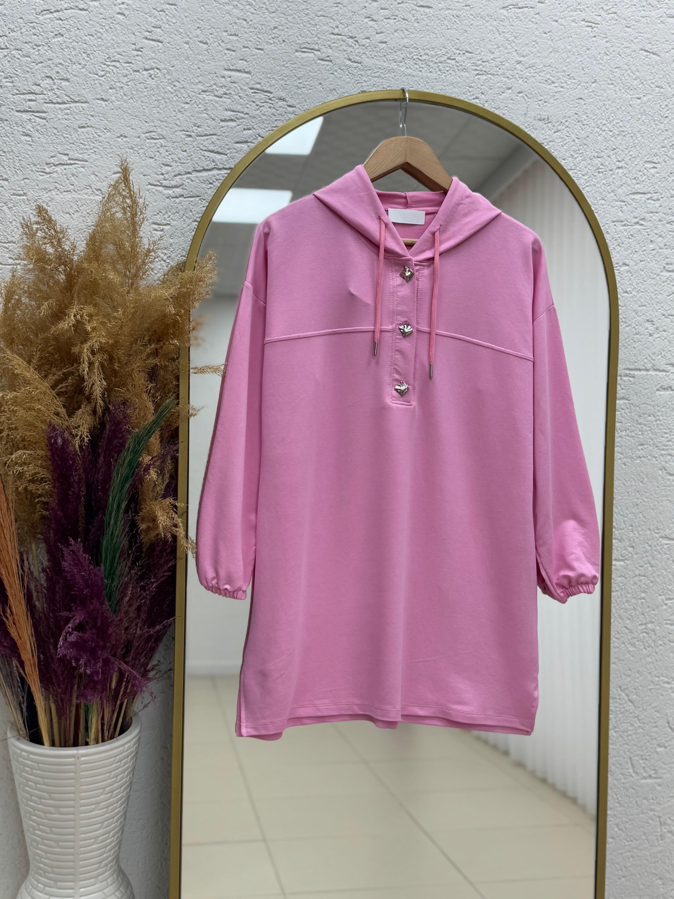 Doronia Önü Üç Yıldız Düğmeli Robalı Kapşonlu İki İp Sweat-ZN4777 Pembe