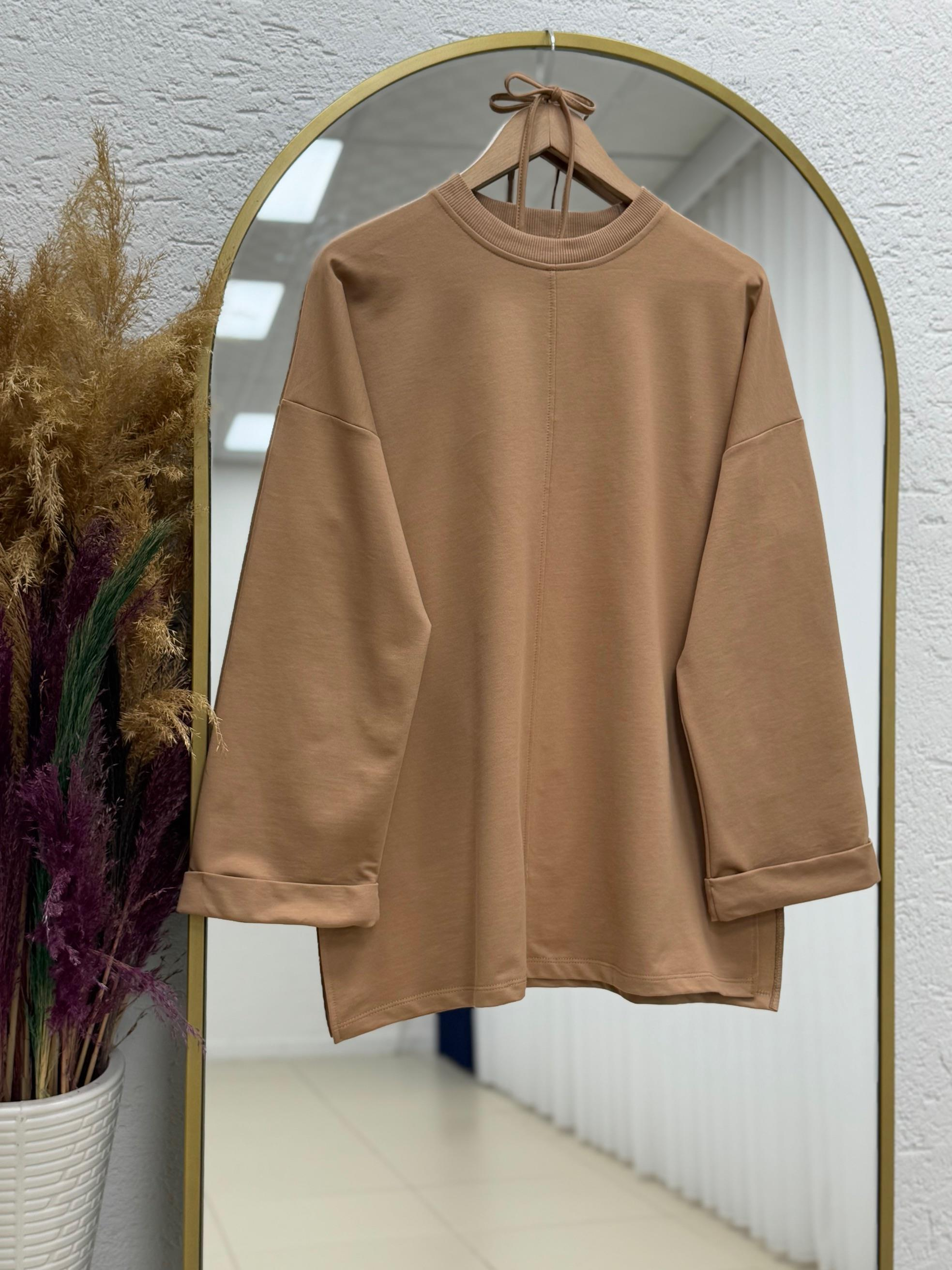 Doryla Kol Ucu Dikiş Detay Sweat-BN4498 Taba