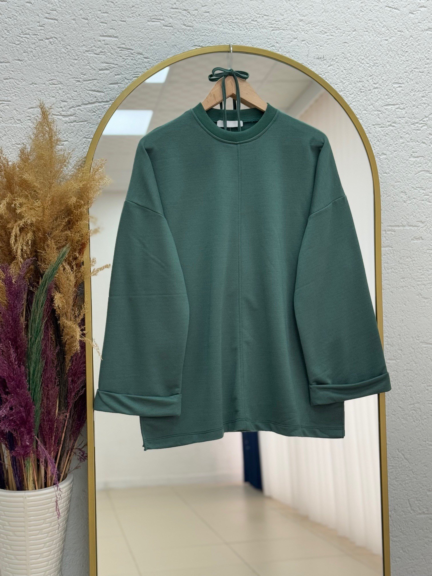 Doryla Kol Ucu Dikiş Detay Sweat-BN4498 Zümrüt Yeşili