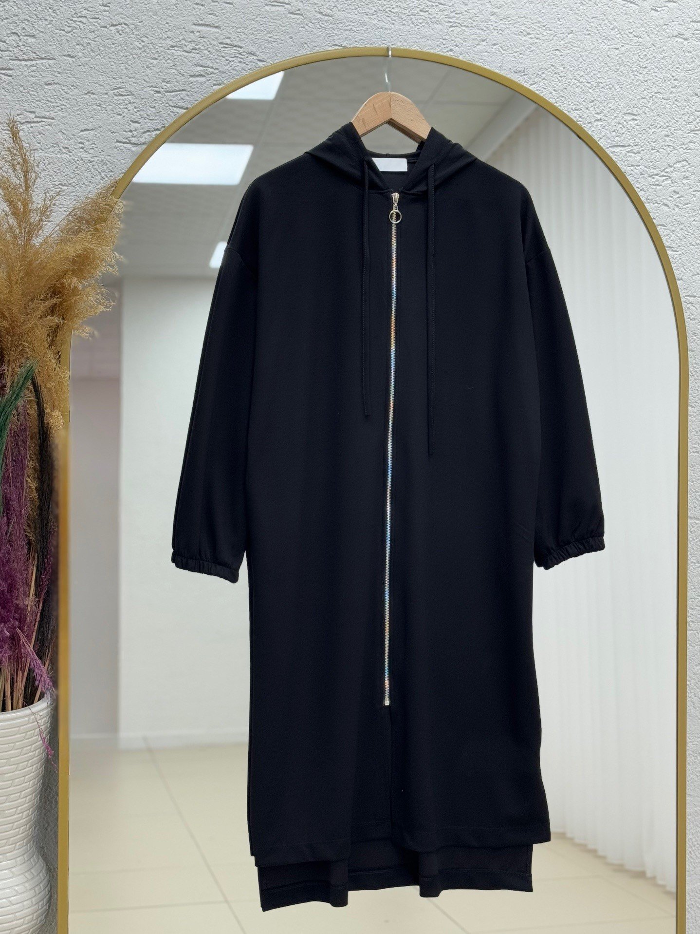 Esmina Fermuarlı Uzun Kap-BN4518 Siyah