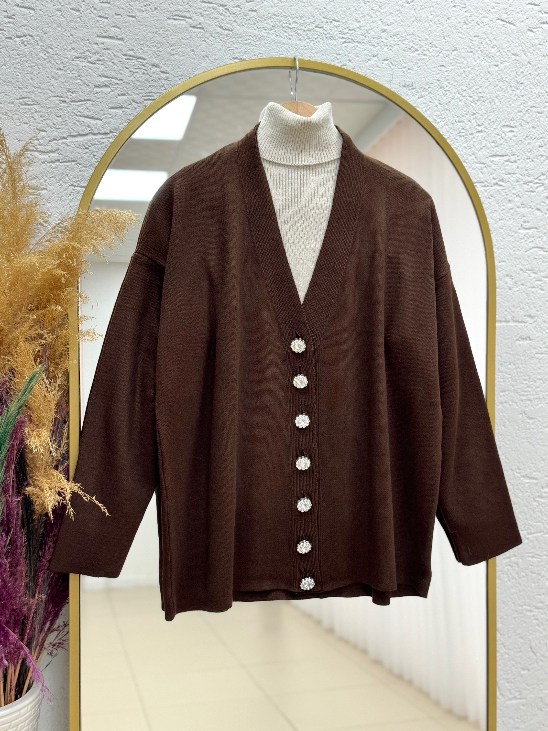 Evin 7 Papatya Düğmeli Hırka-Zİ6183 Kahve