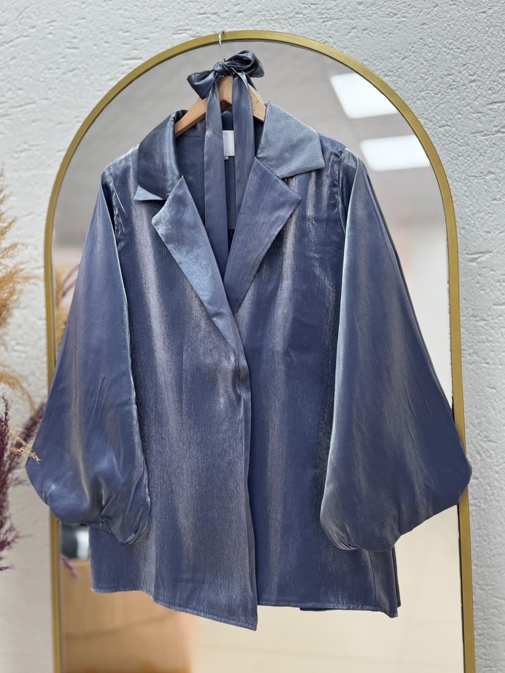 Evla Balon Kol Parlak Kumaş Ceket-EU2482 Lacivert
