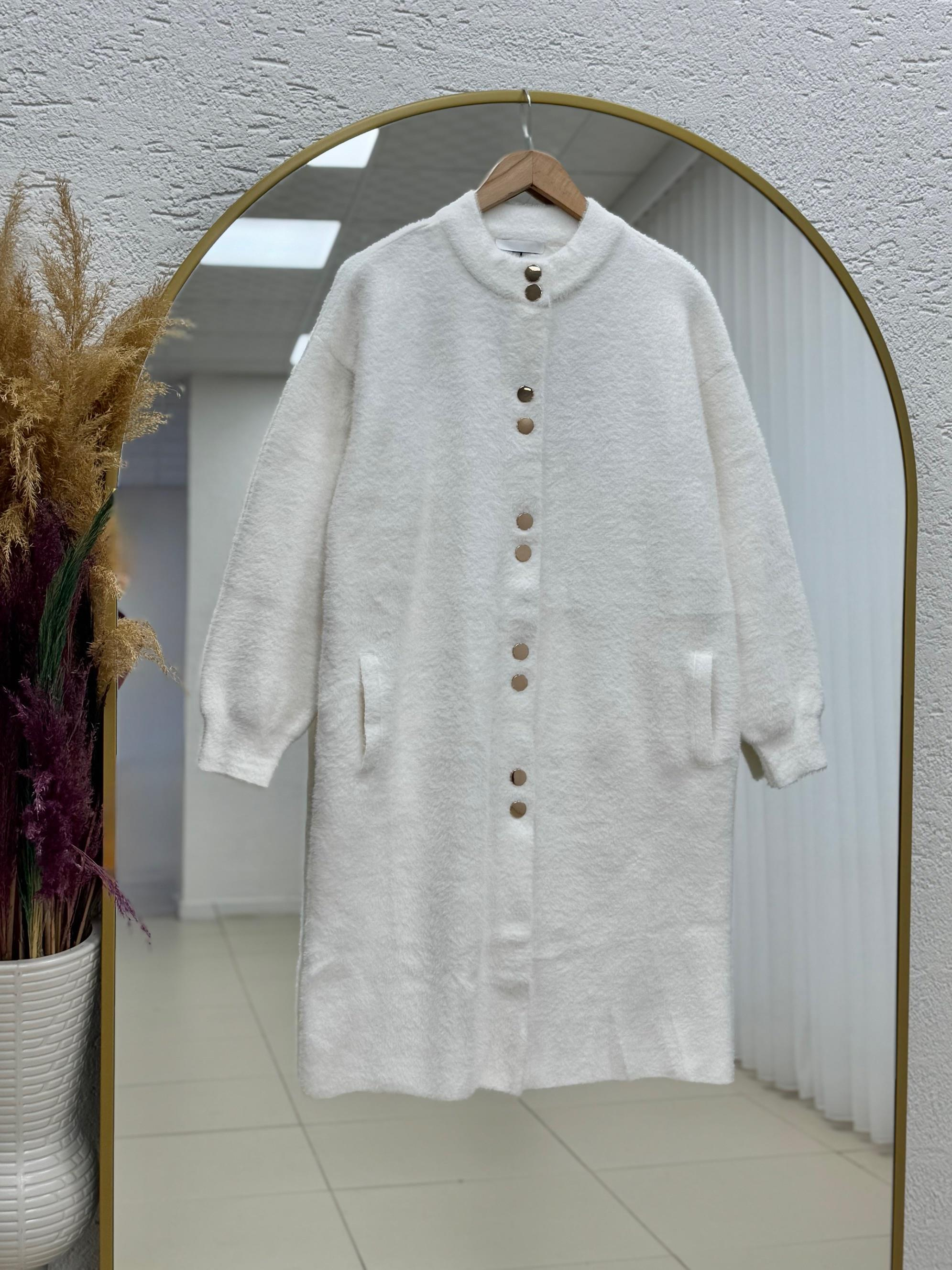 Ferona Çift Gold Düğmeli Peluş Kap-Zİ5251 Beyaz