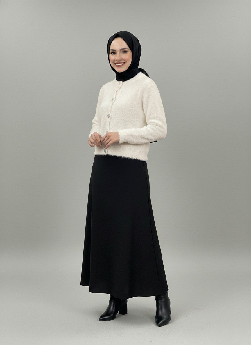 Feruna Papatya Düğmeli Tüylü Peluş Mini Hırka-Zİ5559 Taş