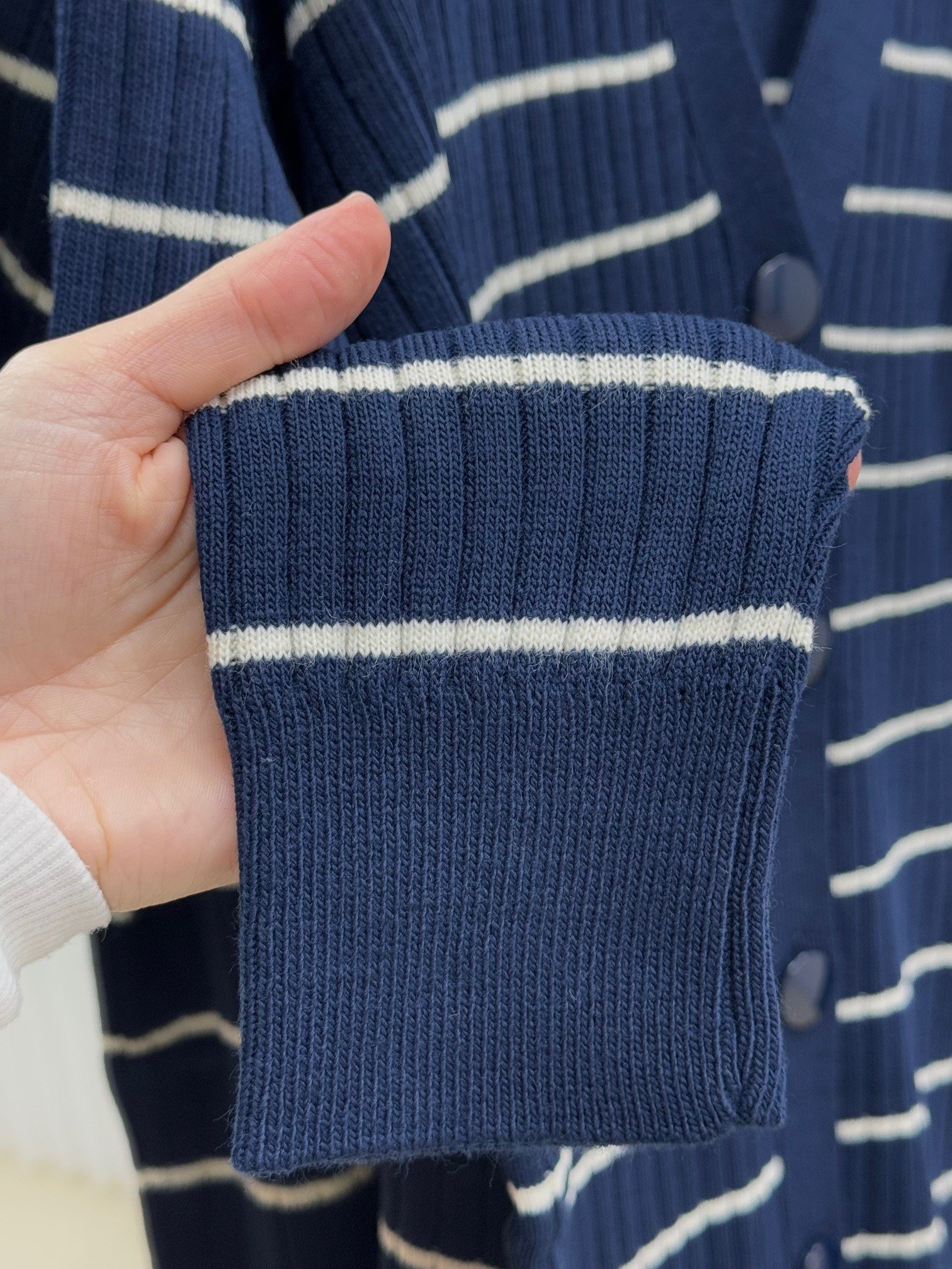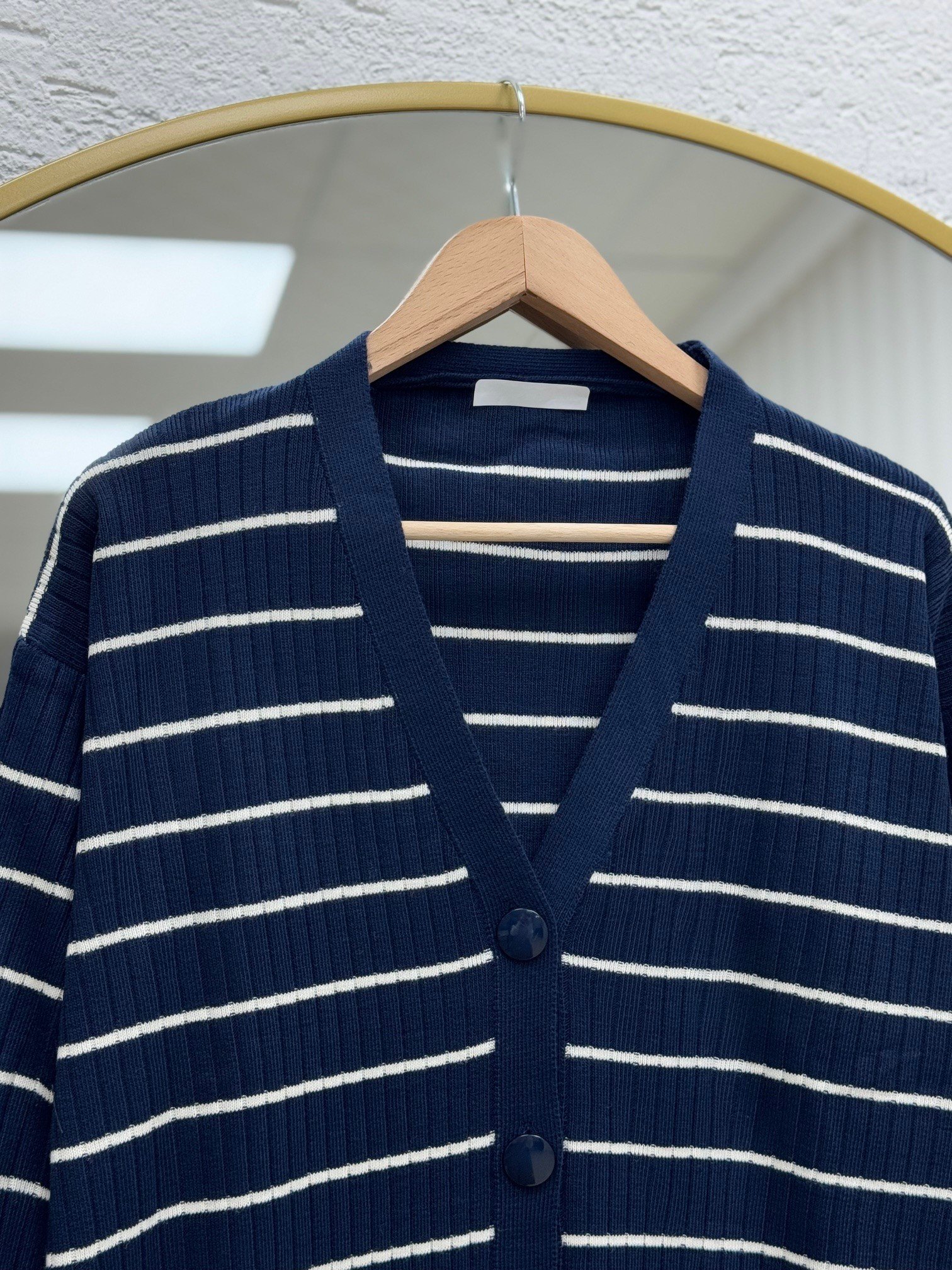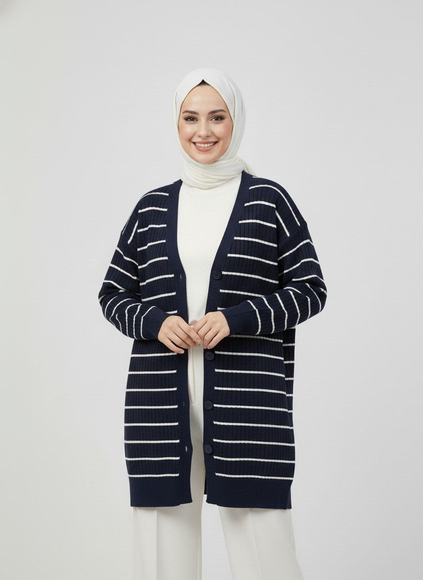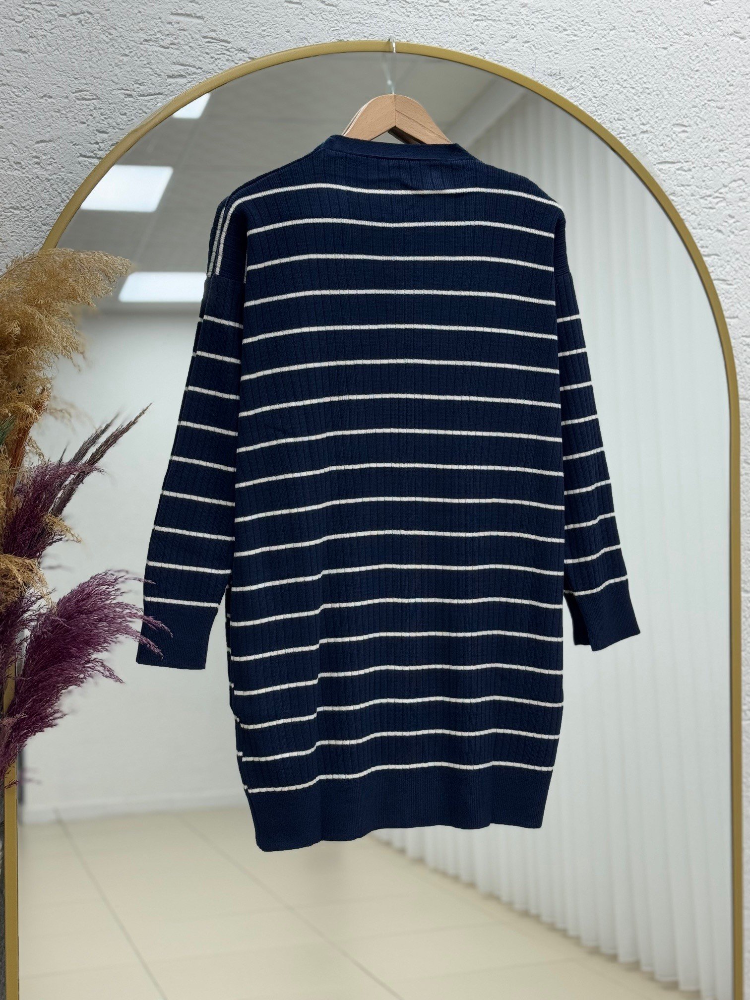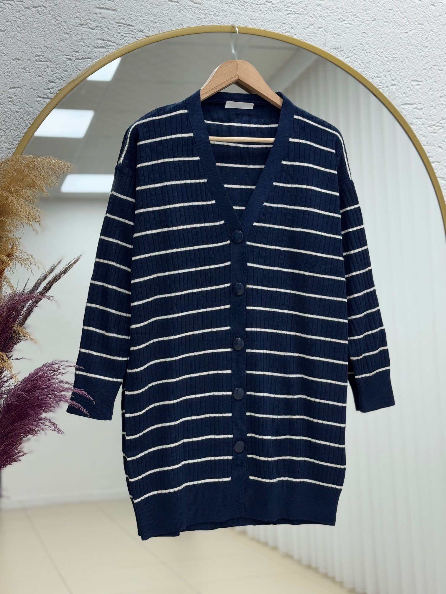 Gavonia Şeritli İri Düğmeli Uzun Triko Hırka-Zİ6137 Lacivert