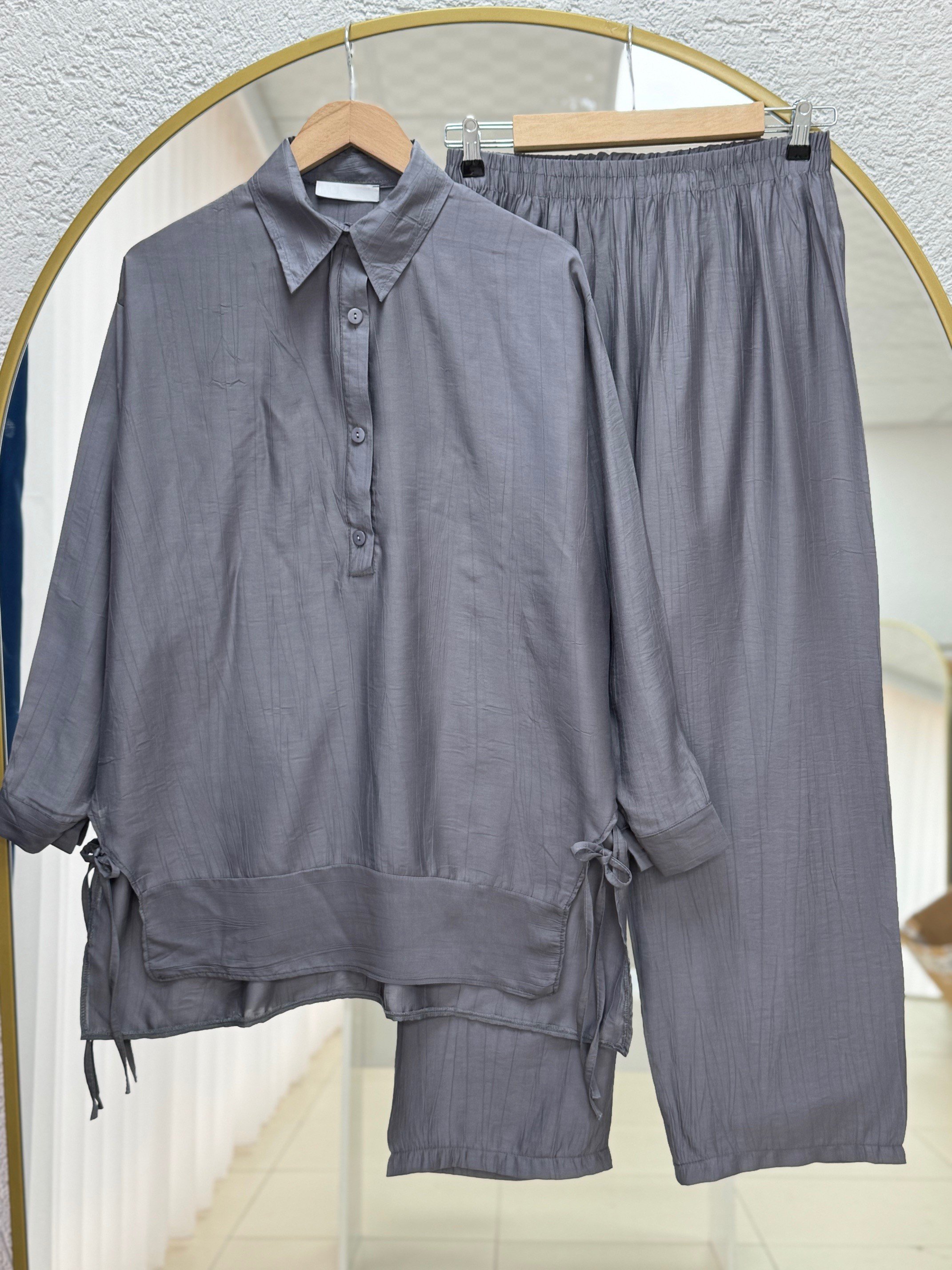 Glarus Yanları İpli Düğmeli Kırışık Çilek Takım-MF458 Antrasit