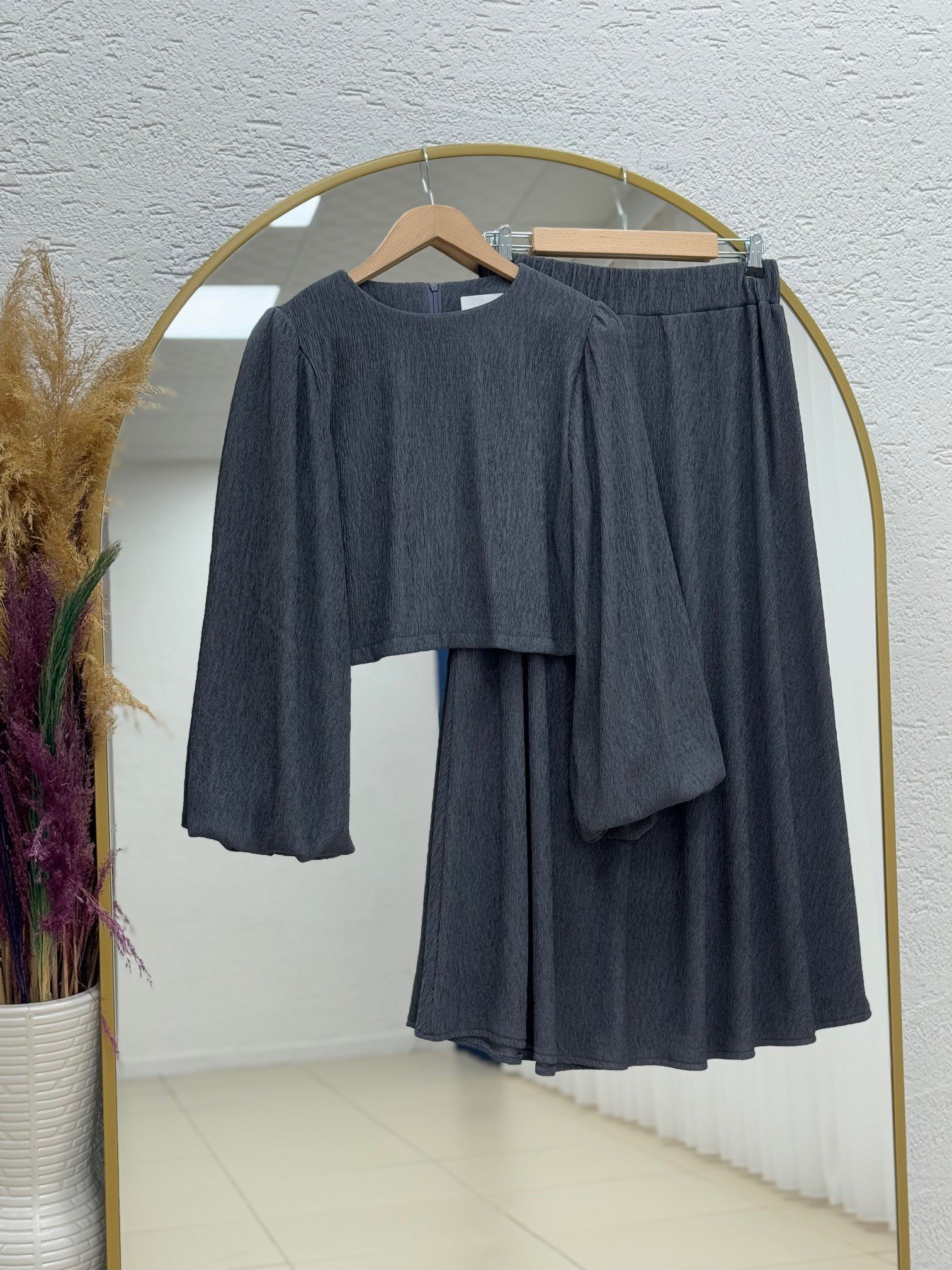 Gülsüm Balon Kol Damla Etekli Takım-EK211 Antrasit