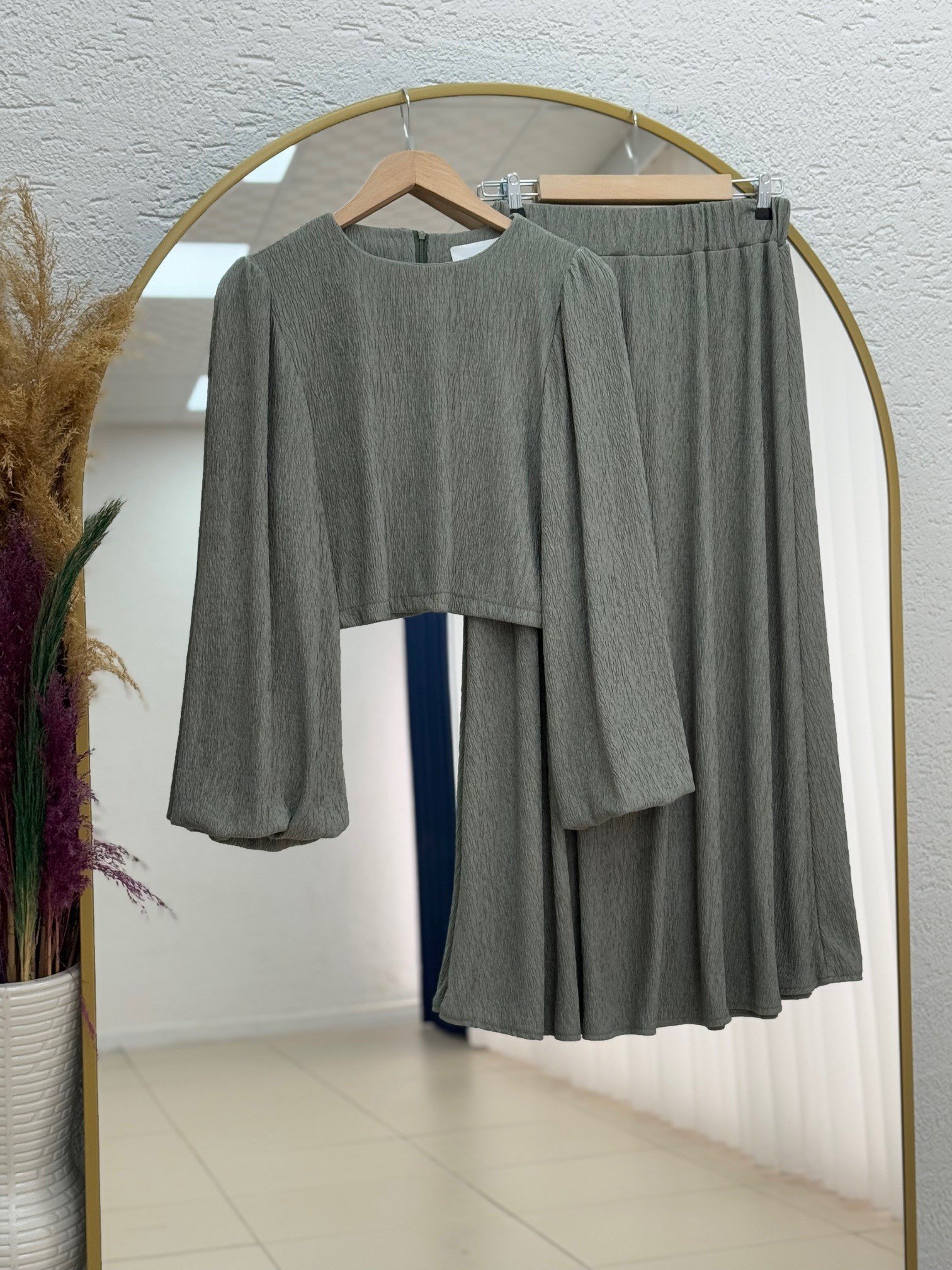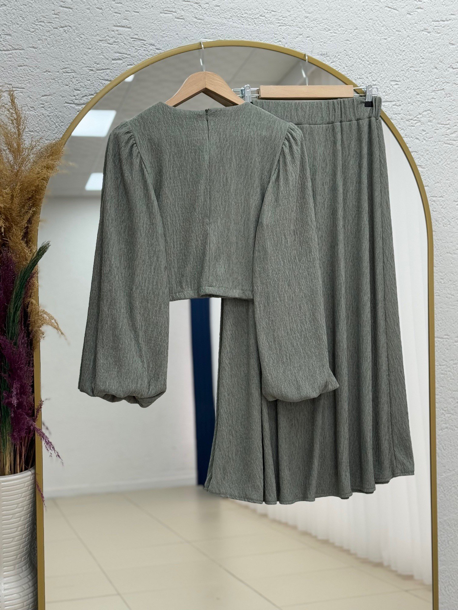 Gülsüm Balon Kol Damla Etekli Takım-EK211 Mint
