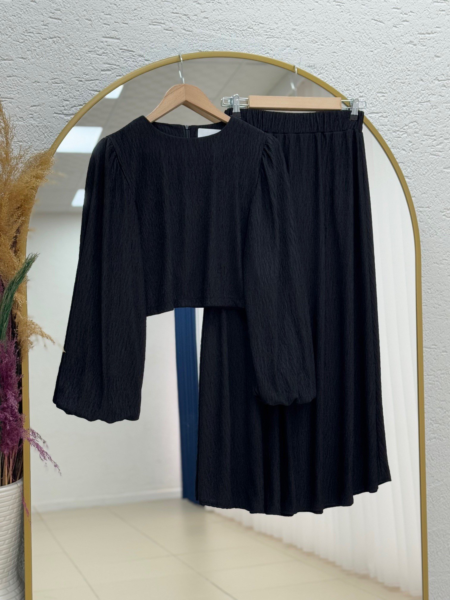 Gülsüm Balon Kol Damla Etekli Takım-EK211 Siyah