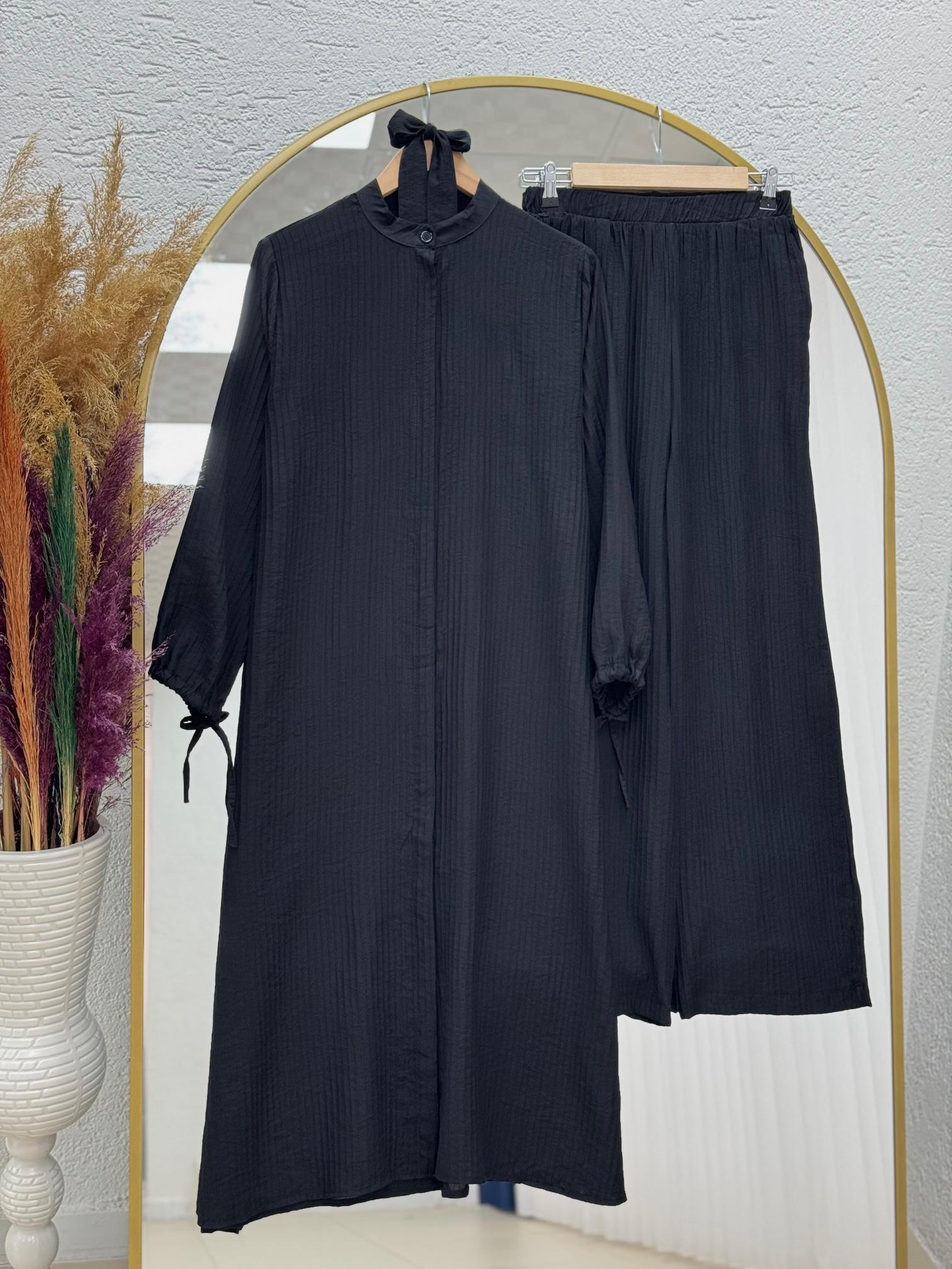 Halona Bilekleri İpli Gizli Patlı Tuniği Uzun Pantolonlu Takım-EK592.3 Siyah