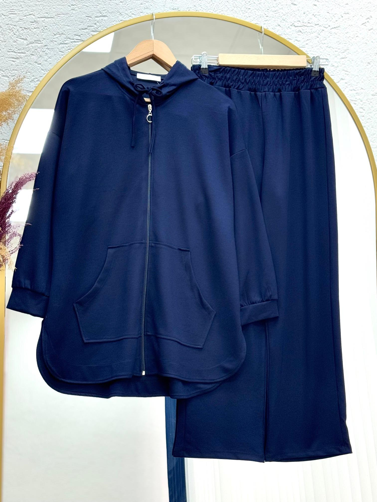 Hande Kanguru Cepli Fermuarlı Pantolonlu Takım-MF1746 Lacivert