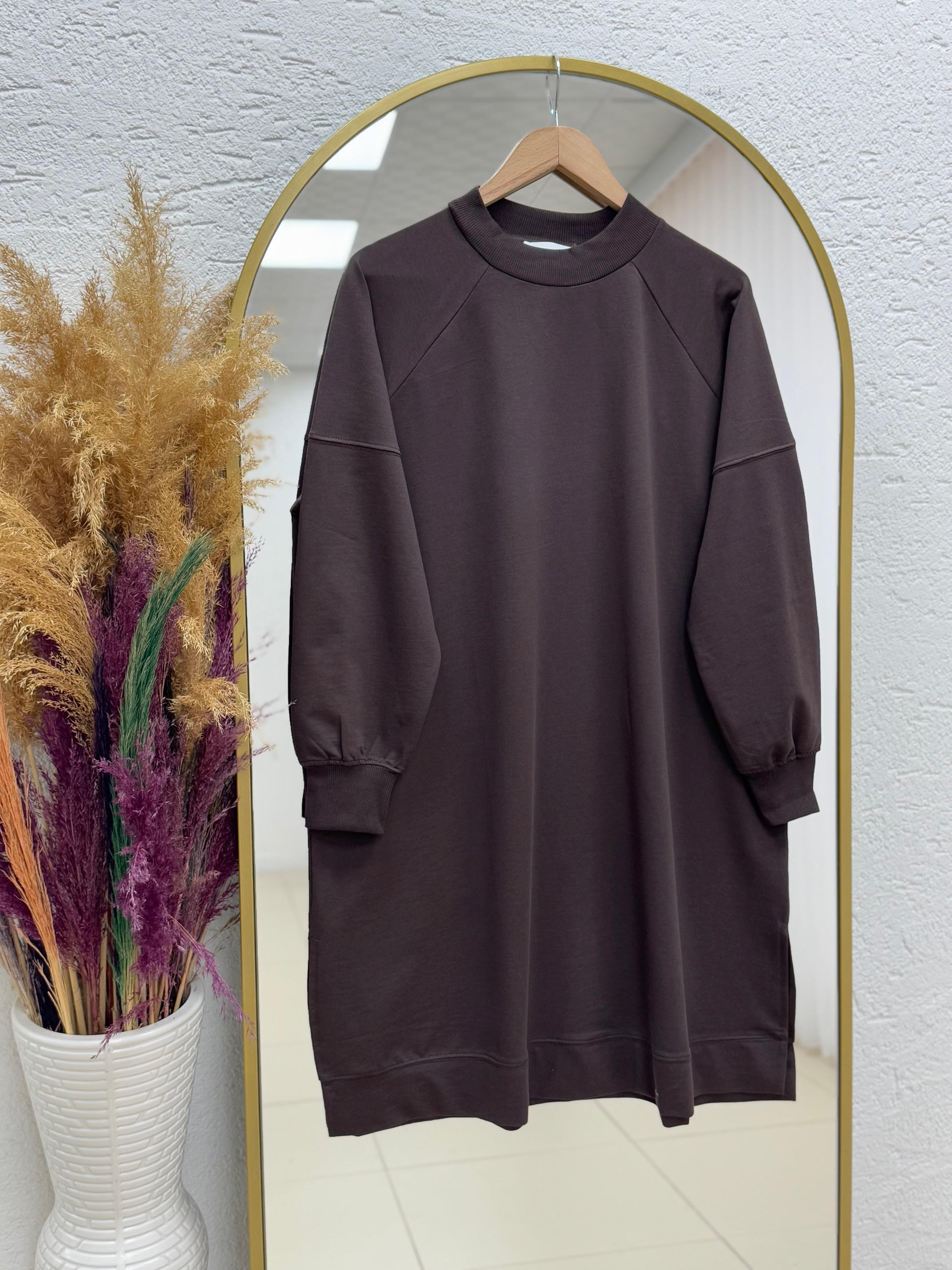 Karessa Dikiş Detaylı Uzun Sweatshirt-EU3072 Kahve