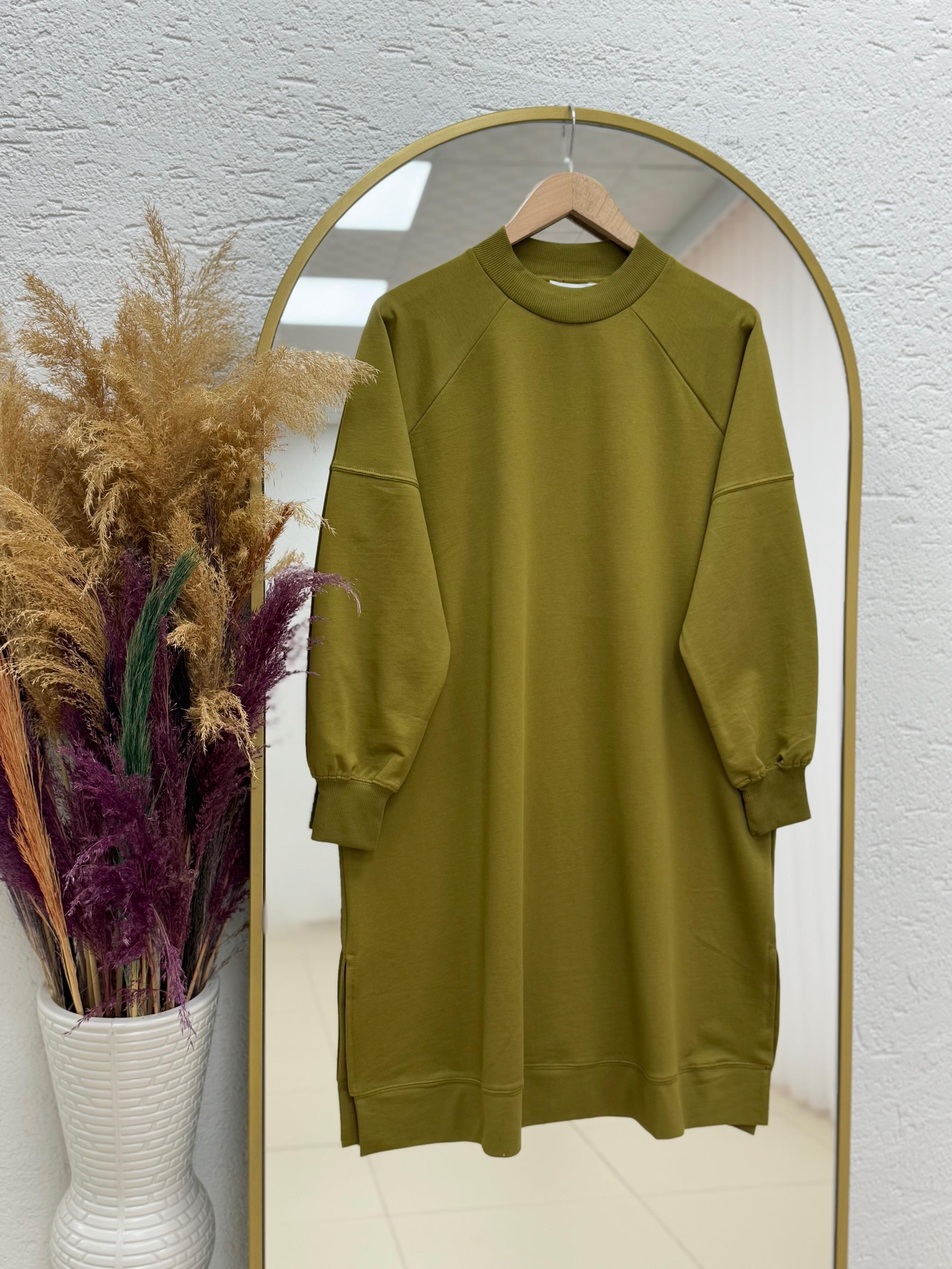 Karessa Dikiş Detaylı Uzun Sweatshirt-EU3072 Yağ Yeşili