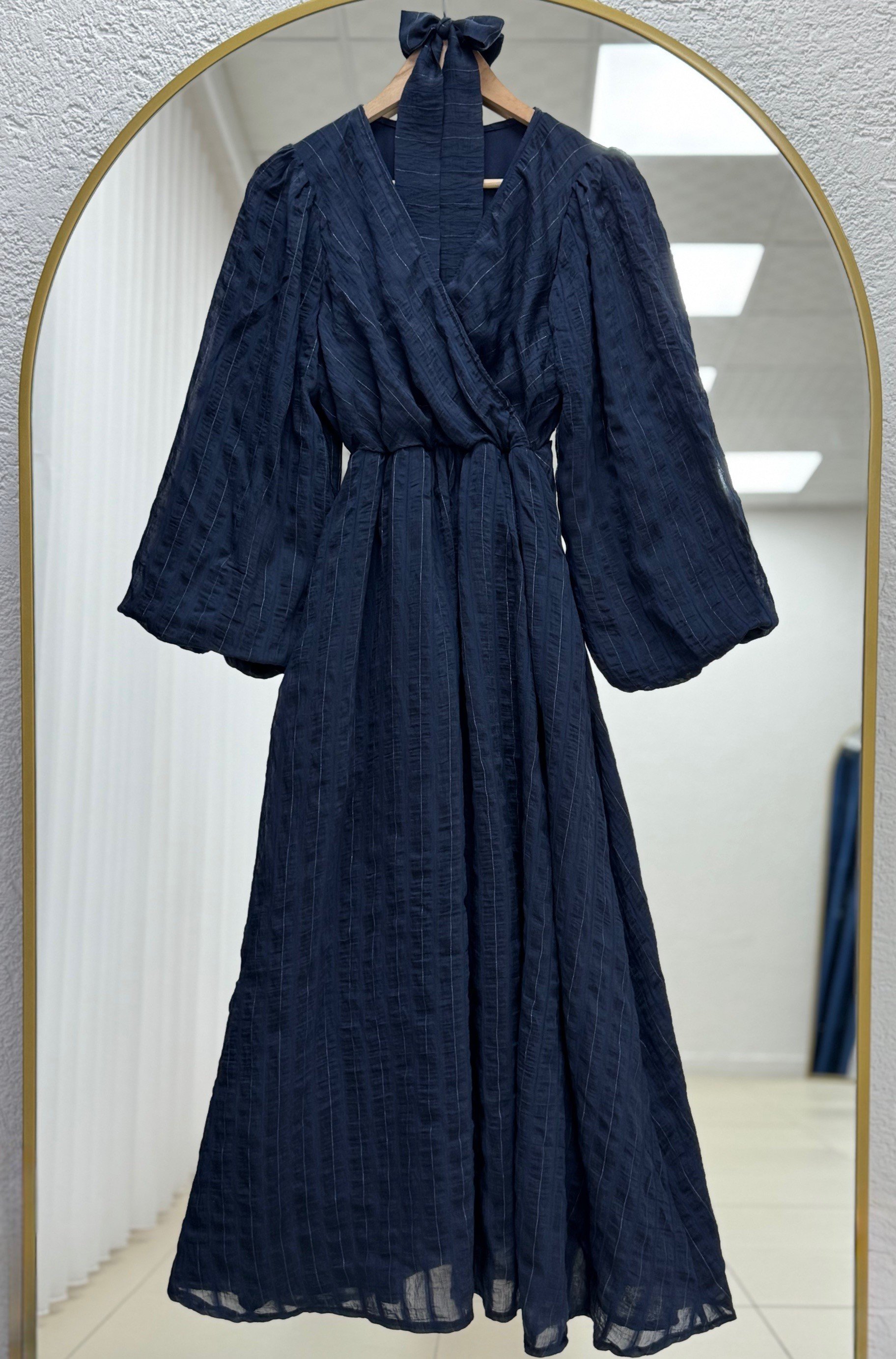 Karista Çapraz Biyeli Kuşaklı Tül Elbise-EK565.3 Lacivert