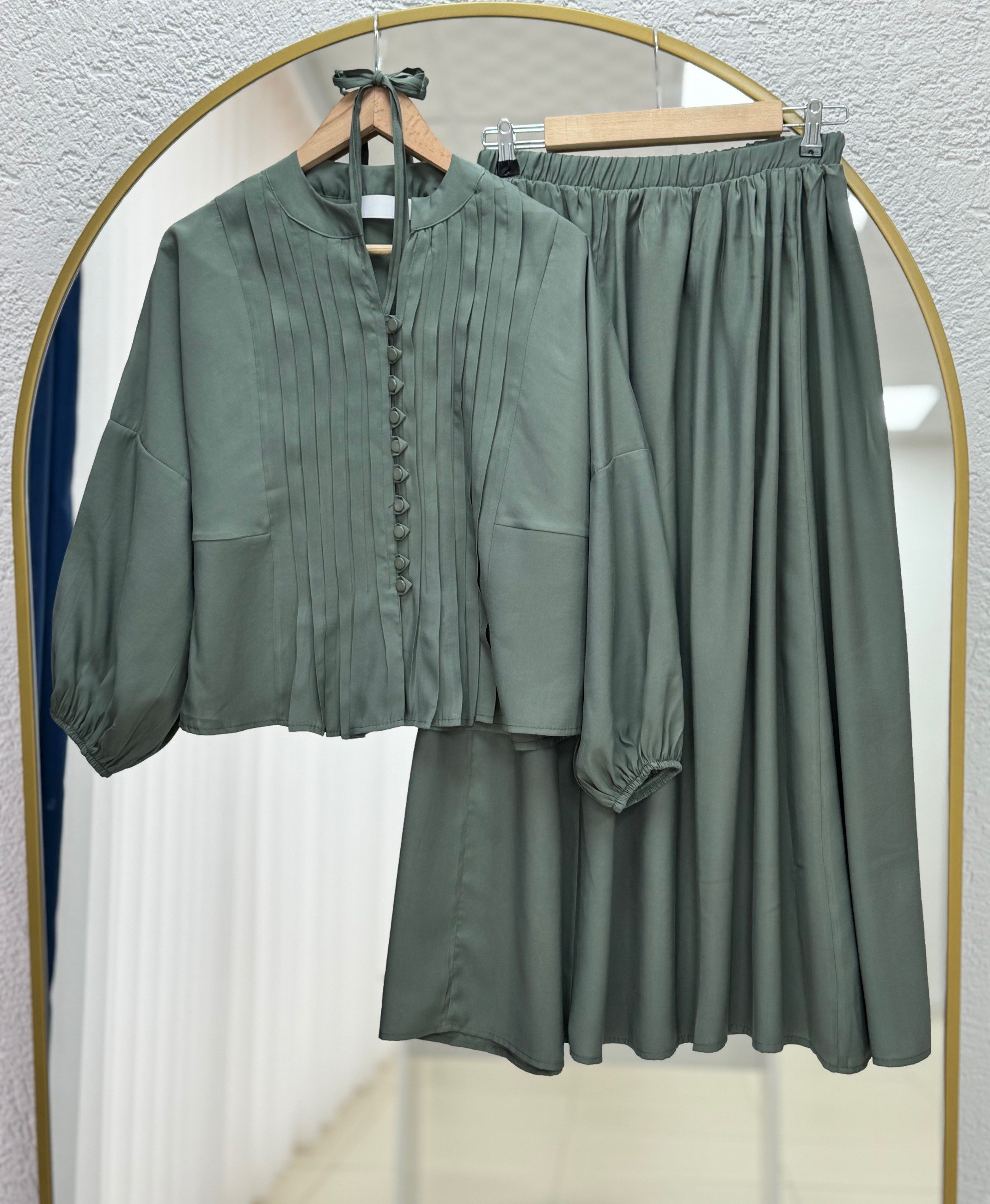 Karola Önü Nervürlü Biyeli Etekli Takım-EK633 Haki