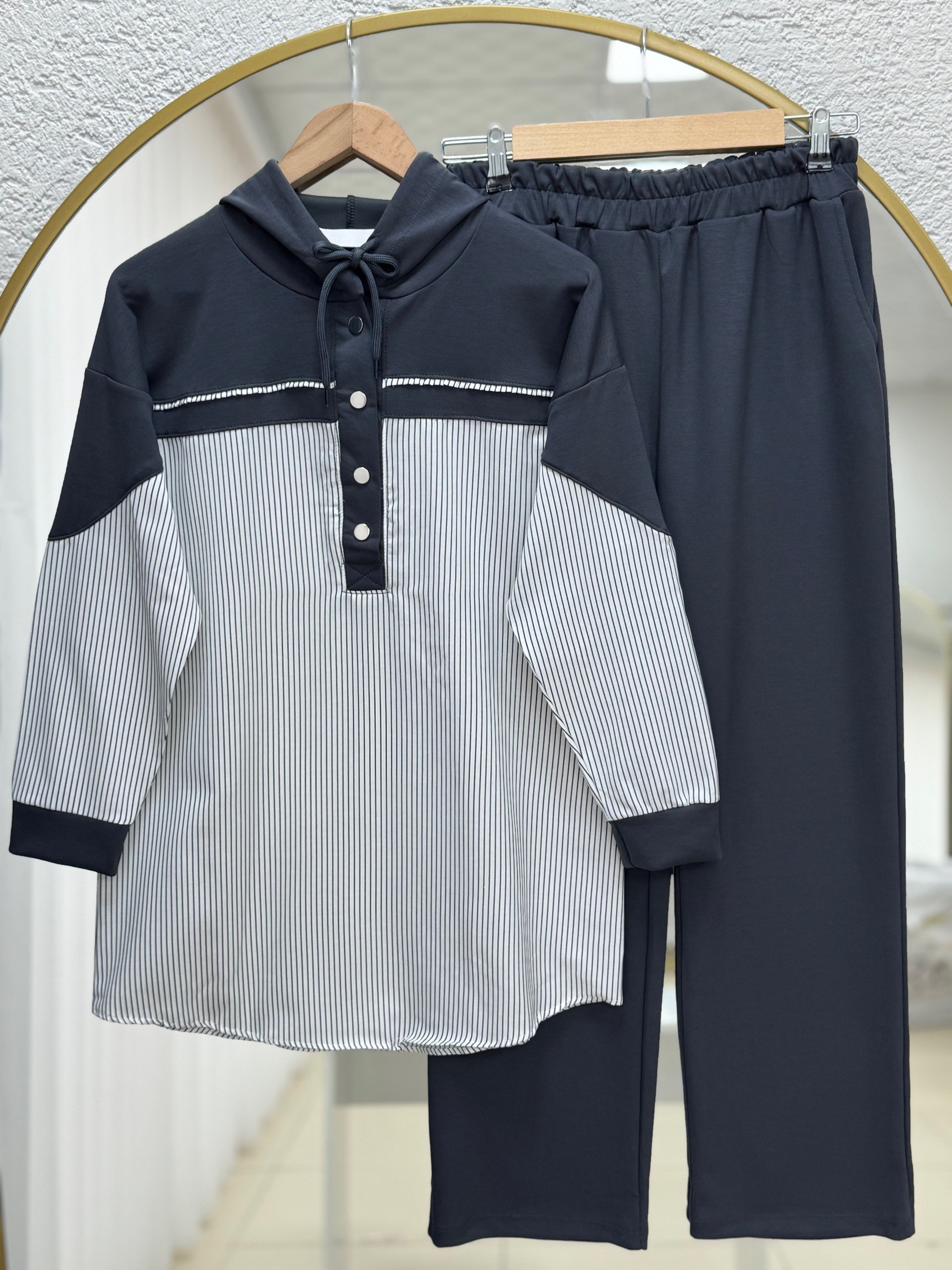 Lamoria Çıtçıt Detay Çizgi Garnili Pantolonlu Takım-NA3414 Antrasit