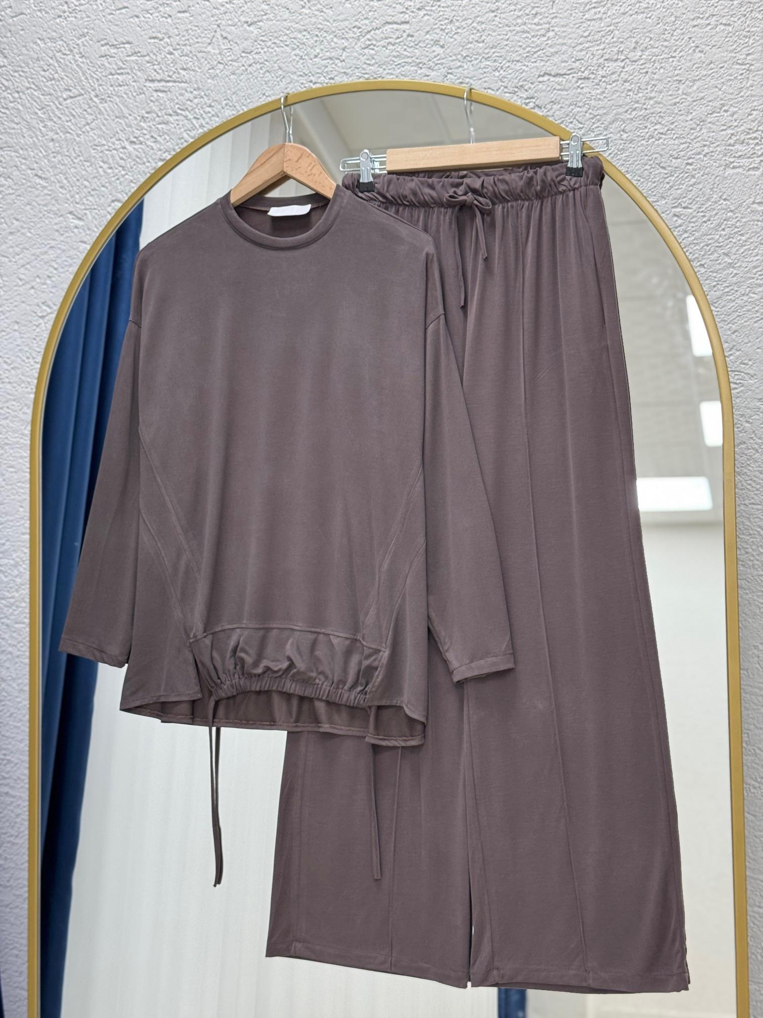 Lororia Bağcıklı Süprem Pantolonlu Takım-NL569 Kahve
