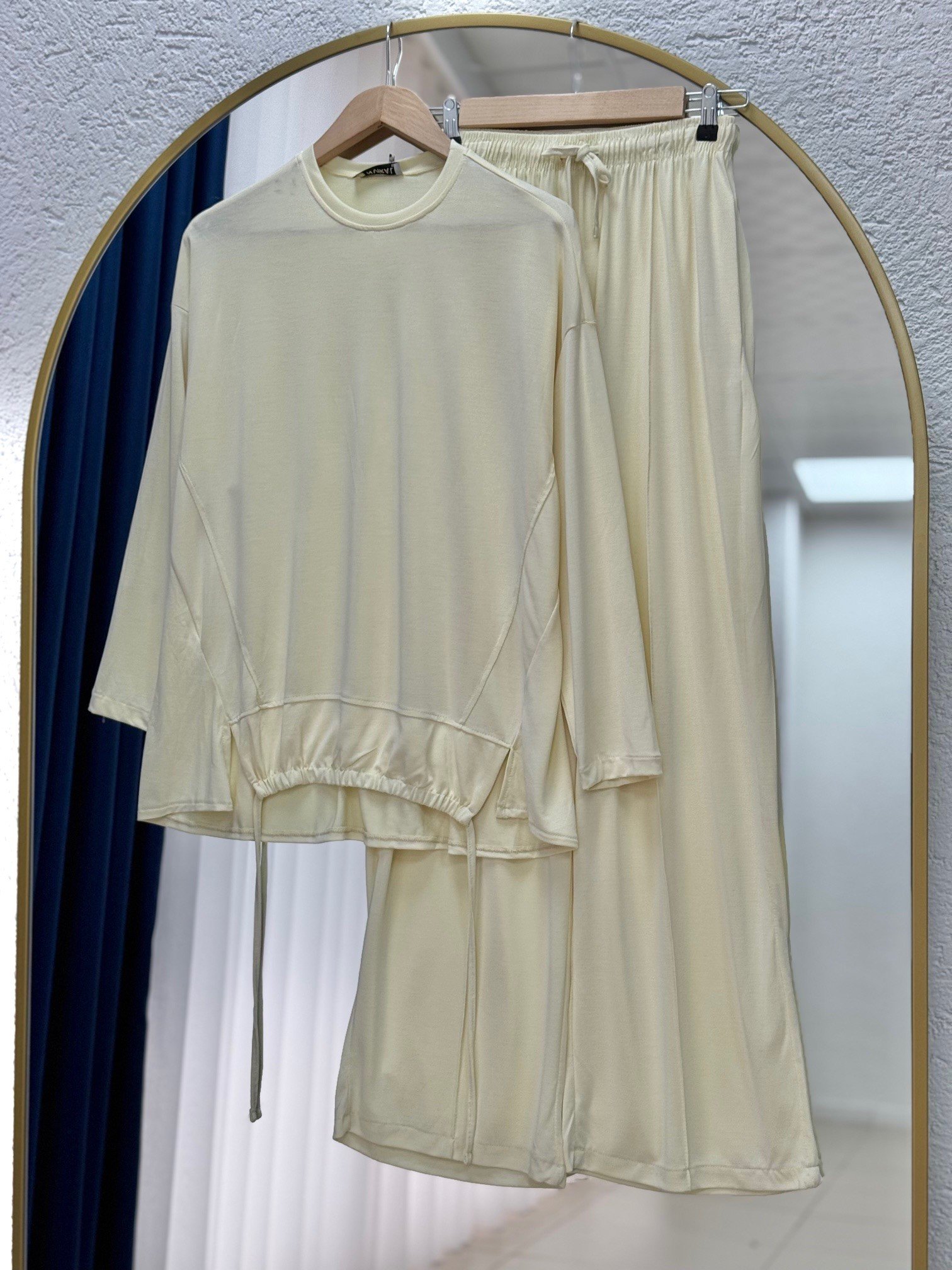 Lororia Bağcıklı Süprem Pantolonlu Takım-NL569 Sarı