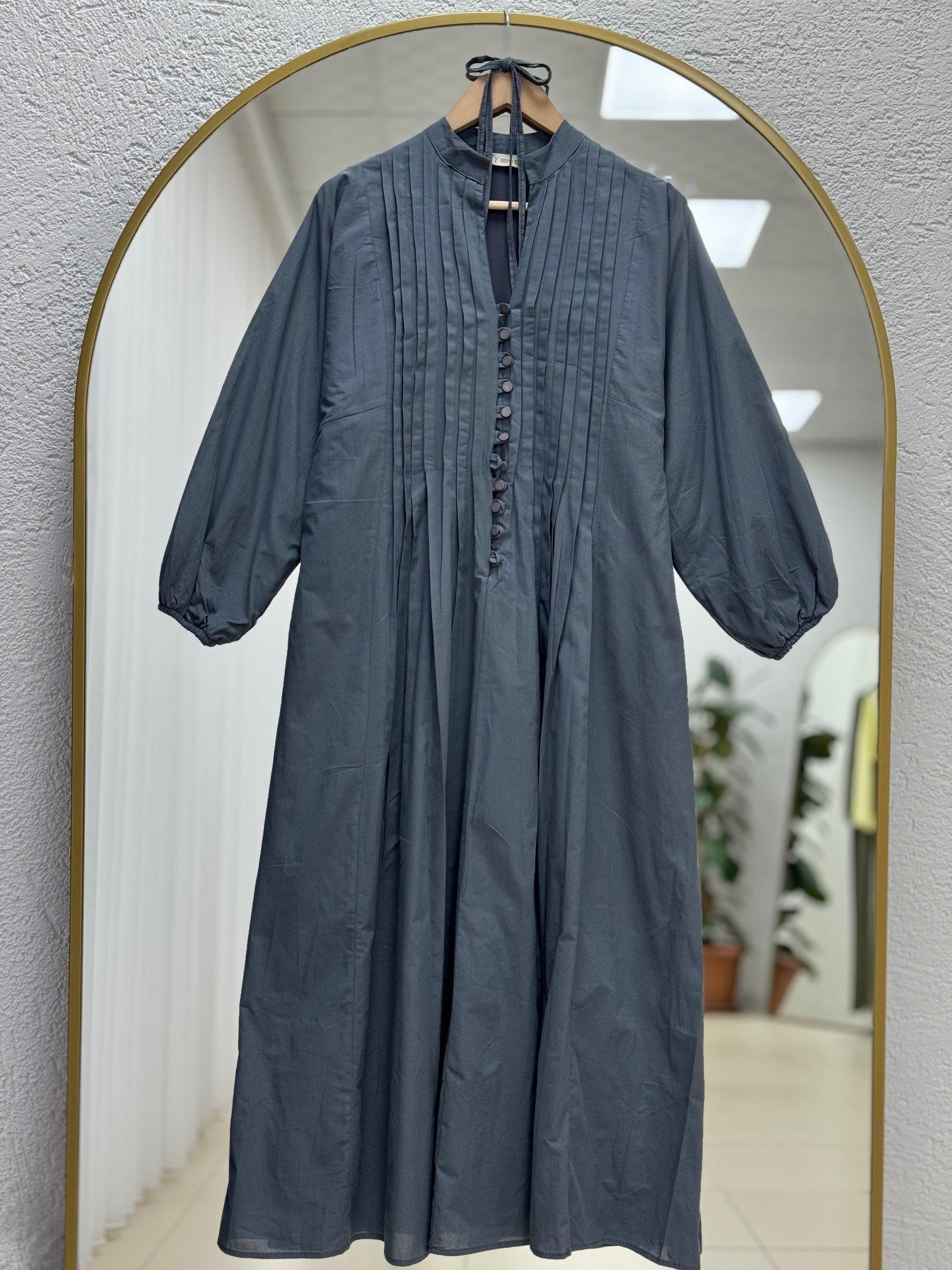 Loryla Önü Nervürlü Biyeli Vual Elbise-EK606.1 Antrasit