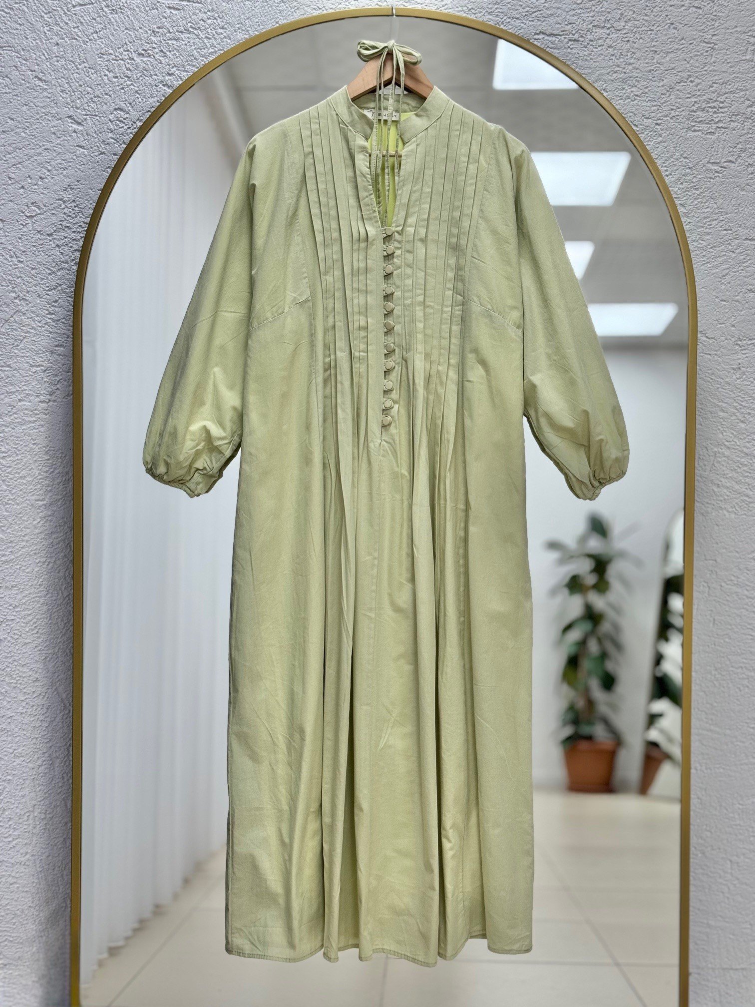 Loryla Önü Nervürlü Biyeli Vual Elbise-EK606.1 Çağla Yeşili