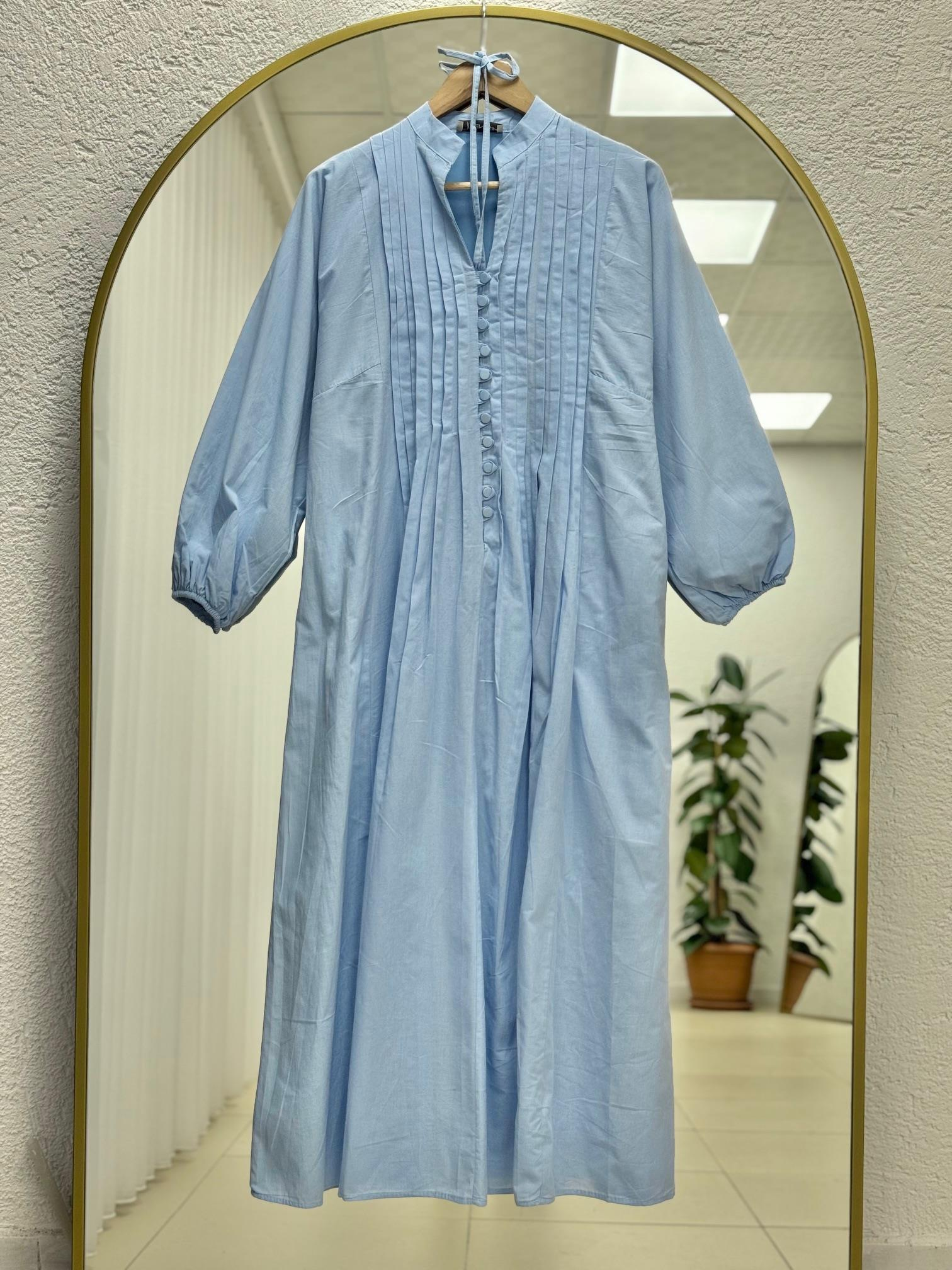 Loryla Önü Nervürlü Biyeli Vual Elbise-EK606.1 Mavi