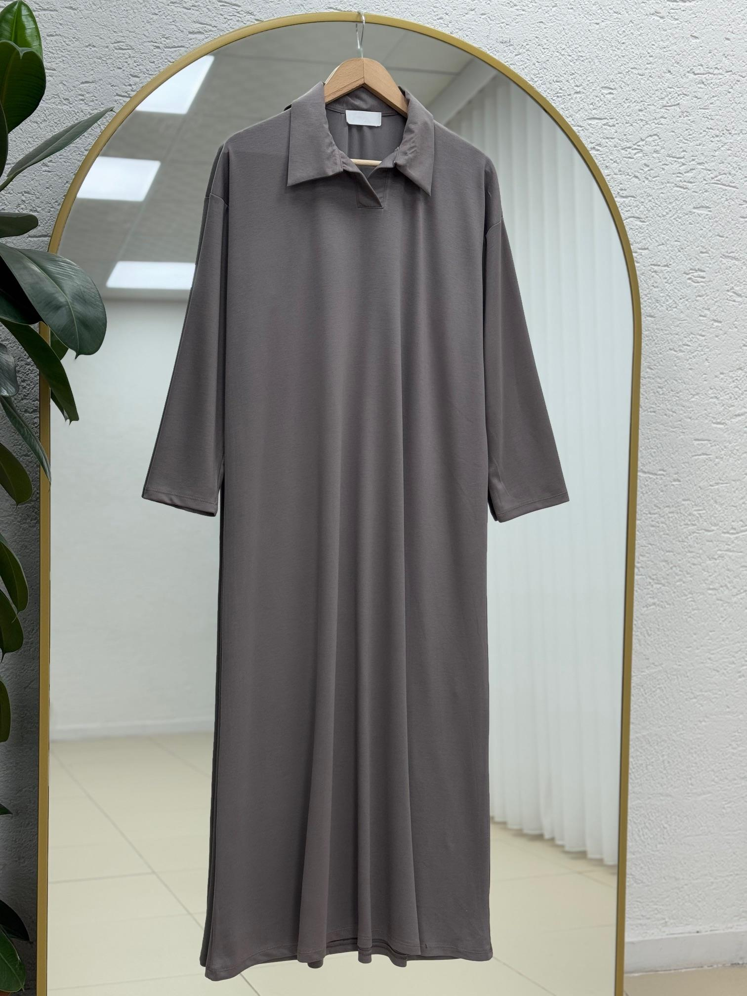 Lunedra Polo Yaka Elbise-NA2405 Kahve
