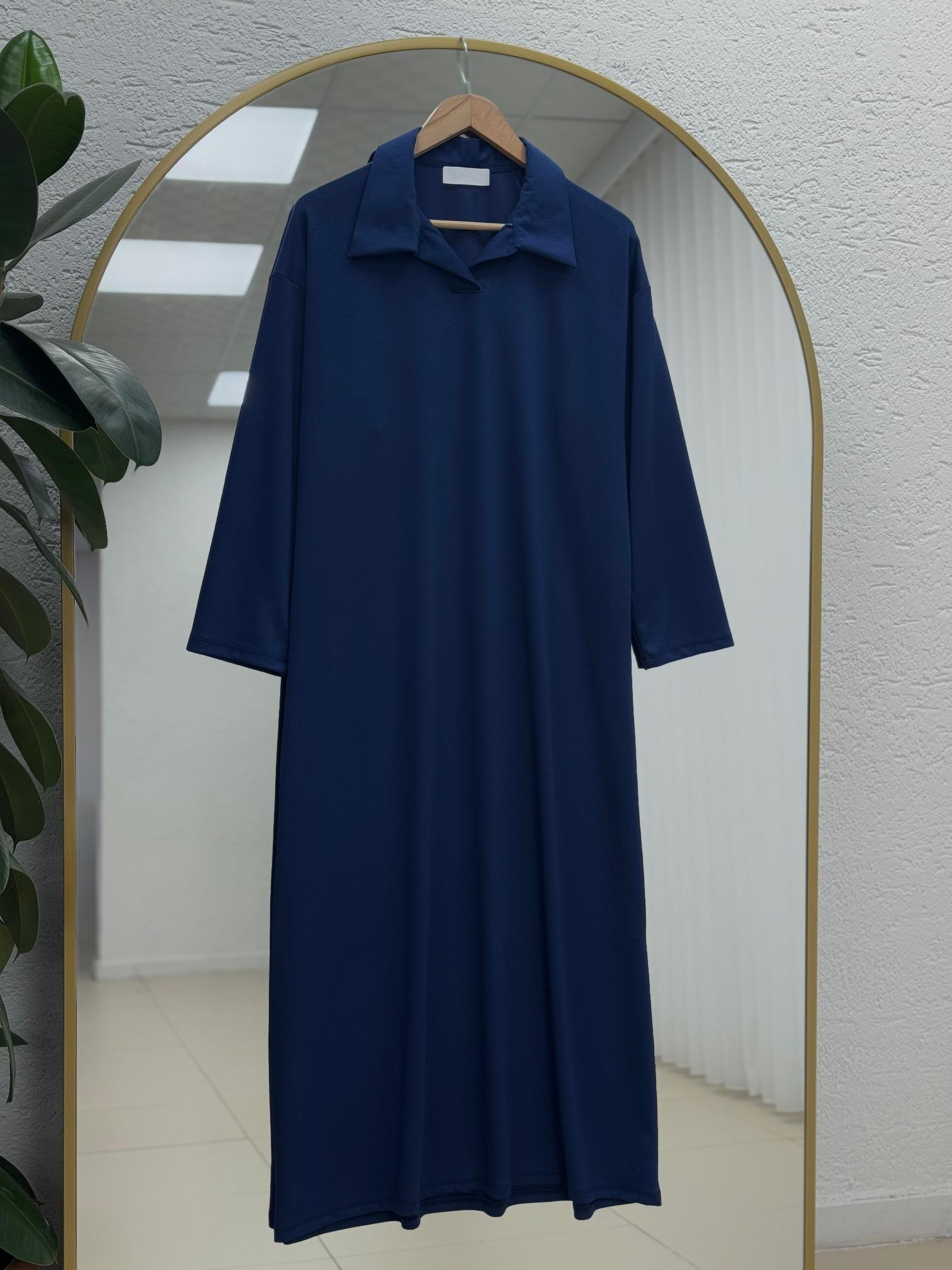 Lunedra Polo Yaka Elbise-NA2405 Lacivert