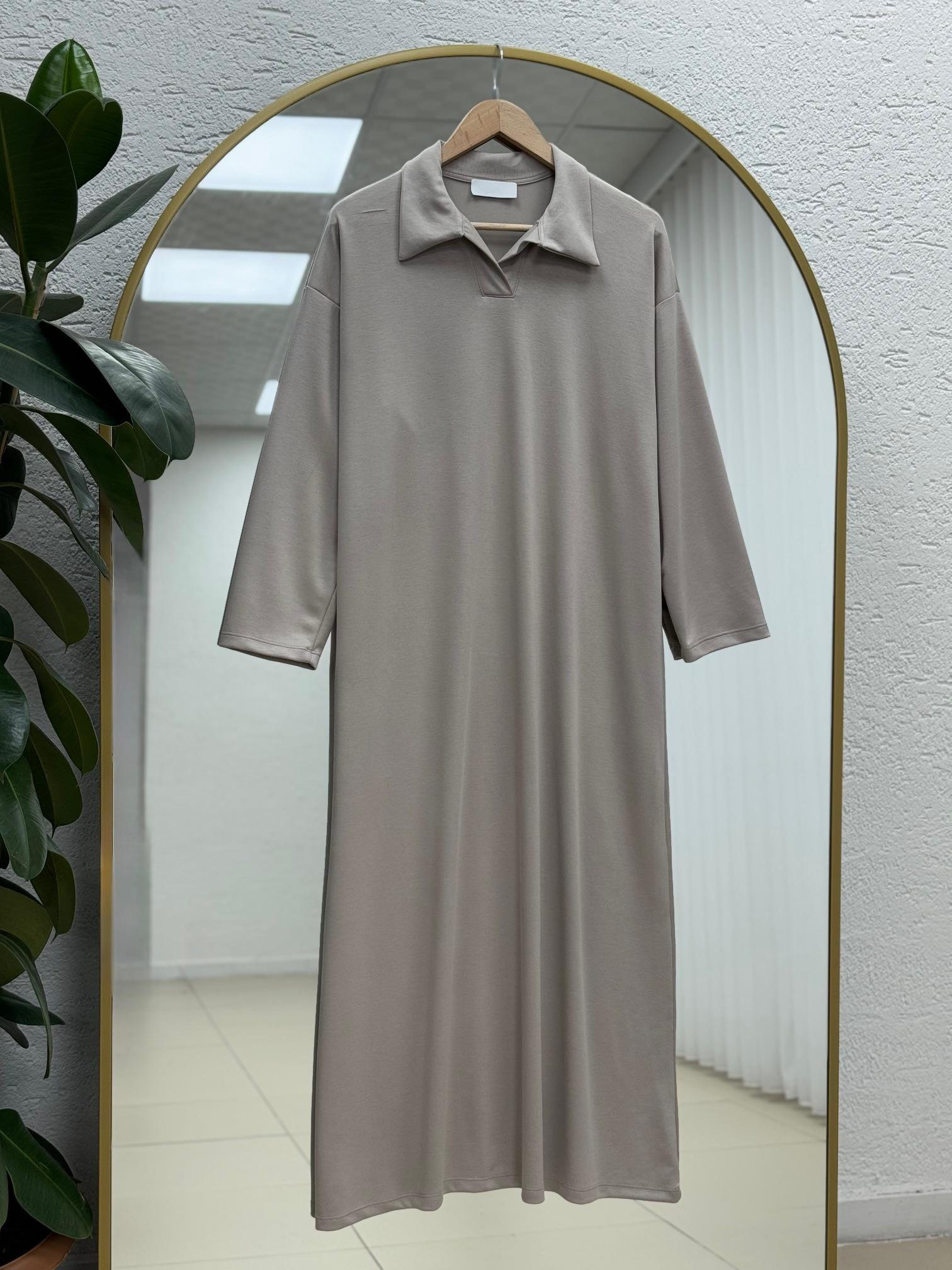 Lunedra Polo Yaka Elbise-NA2405 Taş