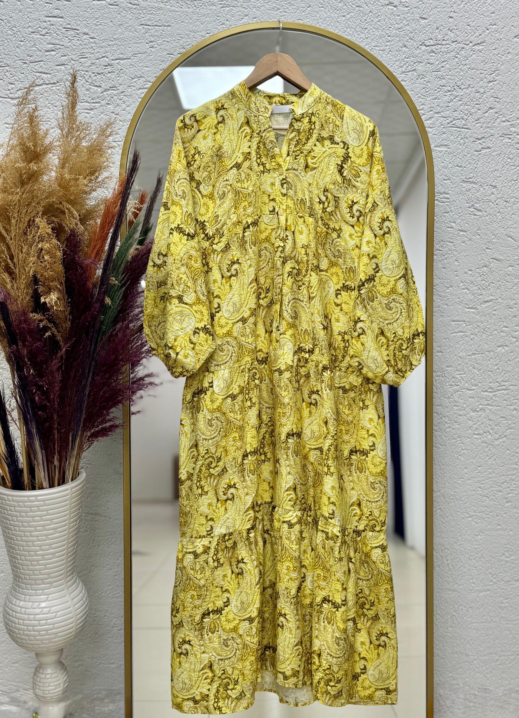 Lunesa Etnik Desen Patlı Elbise-PE634 Sarı