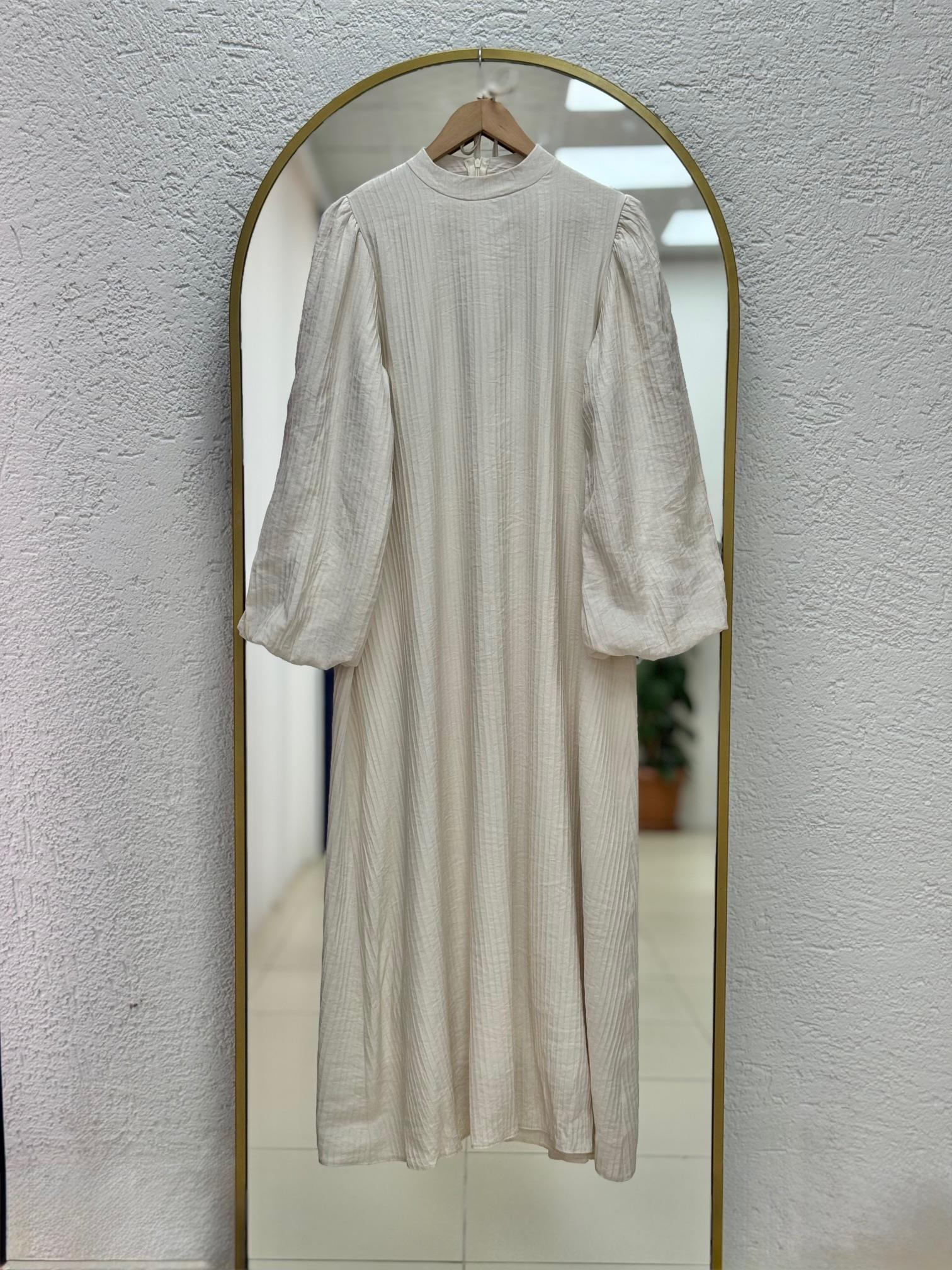 Lunia Balon Kol Hakim Yaka Kuşaklı Vrn Elbise-EK124.12 Taş
